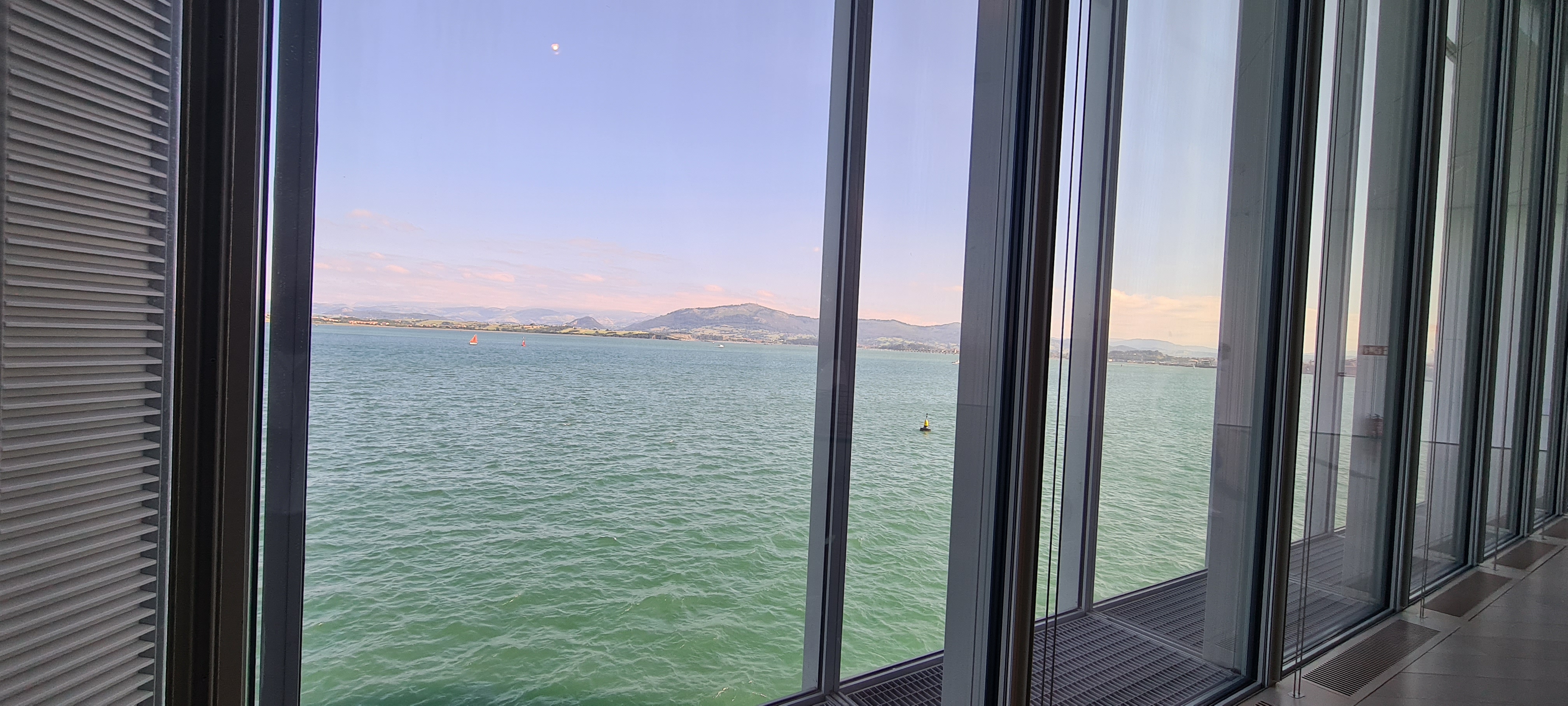Ahora os enseño los maravillosos ventanales de una de las salas de exposiciones del Centro, que te dejan hacer fotos mientras no saques a las obras de arte. Y pienso ¿Qué mejor obra de arte que la Bahía de Santander?