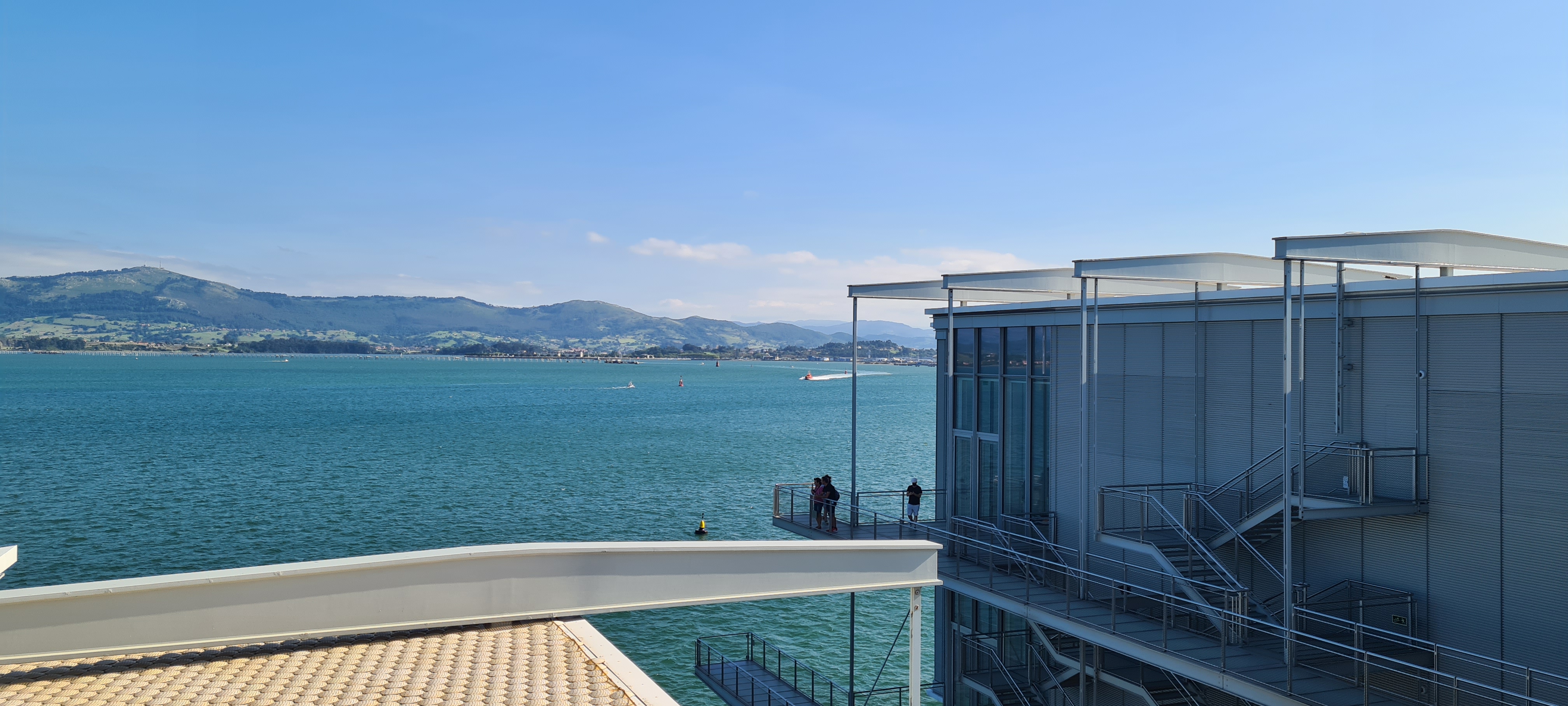 El Centro Botín tiene unas escaleras que llevan a unas pasarelas en su exterior desde las que se tienen unas estupendas vistas también de Santander y de su bahía.