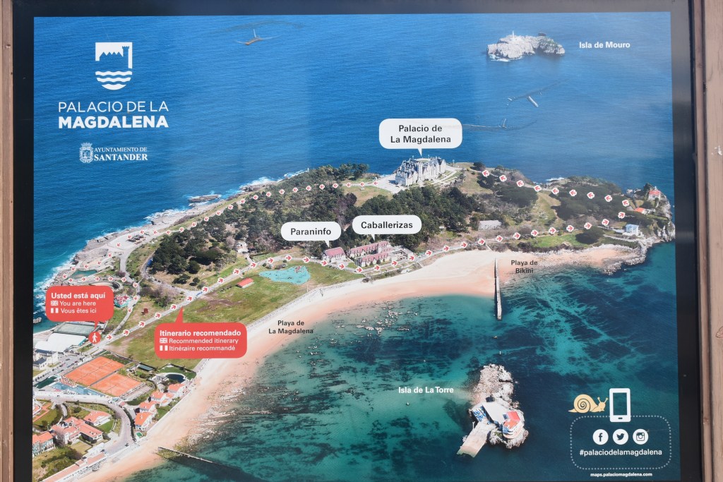 Así entramos en la Península de la Magdalena, para disfrutar de sus caminos y de sus vistas. El palacio de verano solo se visita los fines de semana (durante el verano) ya que están los cursos de verano de la UMP. Nos tenemos que conformar con los exteriores y desde luego el entorno es imprescindible.
