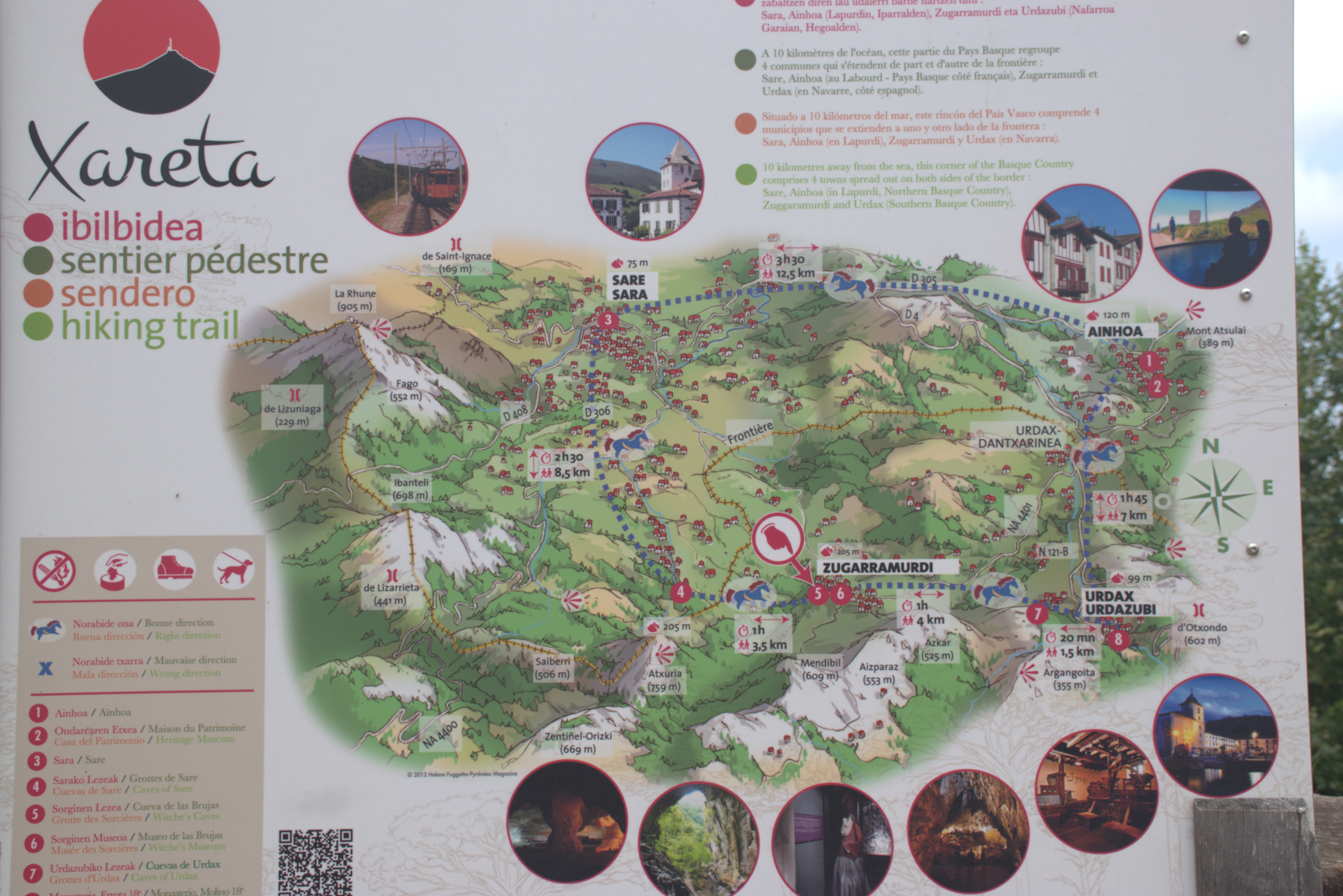Con mucha tranquilidad nos vamos a nuestra siguiente parada, Zugarramurdi. El pueblo de las Brujas. Hay una ruta para hacer a pie desde Urdax a Zugarramurdi muy conocida en la zona, señalizada con un caballo azul, la ruta de «Los Contrabandistas». Tiene versión larga, recorriendo otros sitios y versión corta. Pero hoy no era el día de hacer ruta.