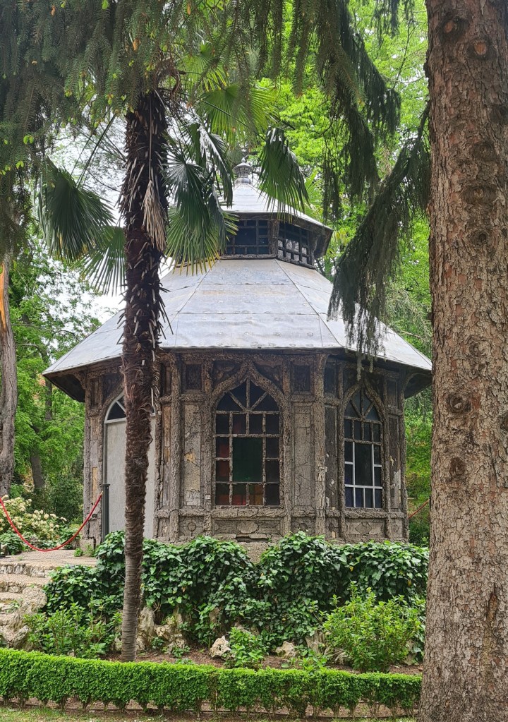 El Chalet de Corcho, se llama así porque está recubierto de corcho prácticamente en su totalidad. También se construyó en 1898, pero este de forma octogonal, tiene forma de pequeña pagoda. Este pequeño edificio está bastante mal conservado.