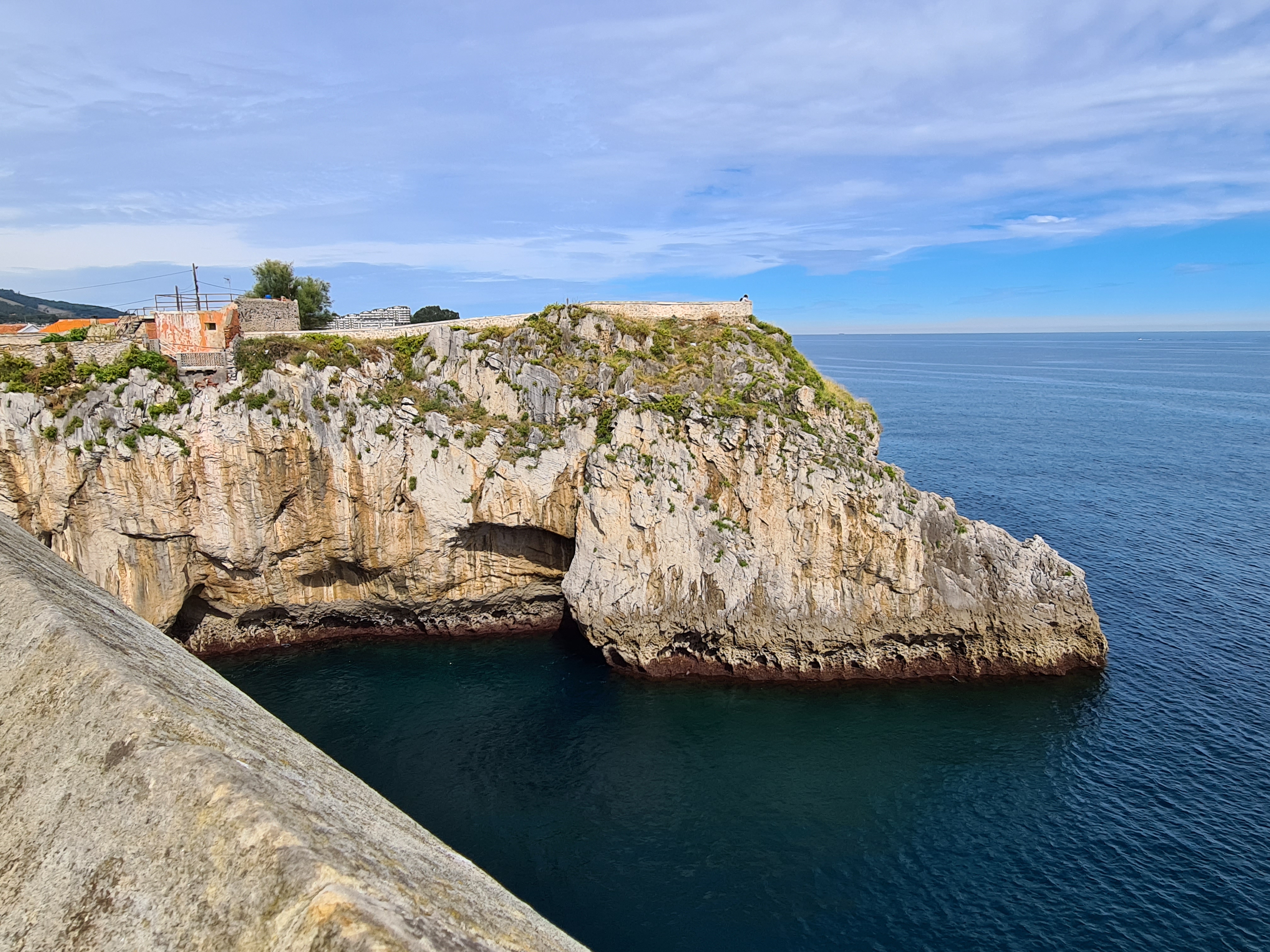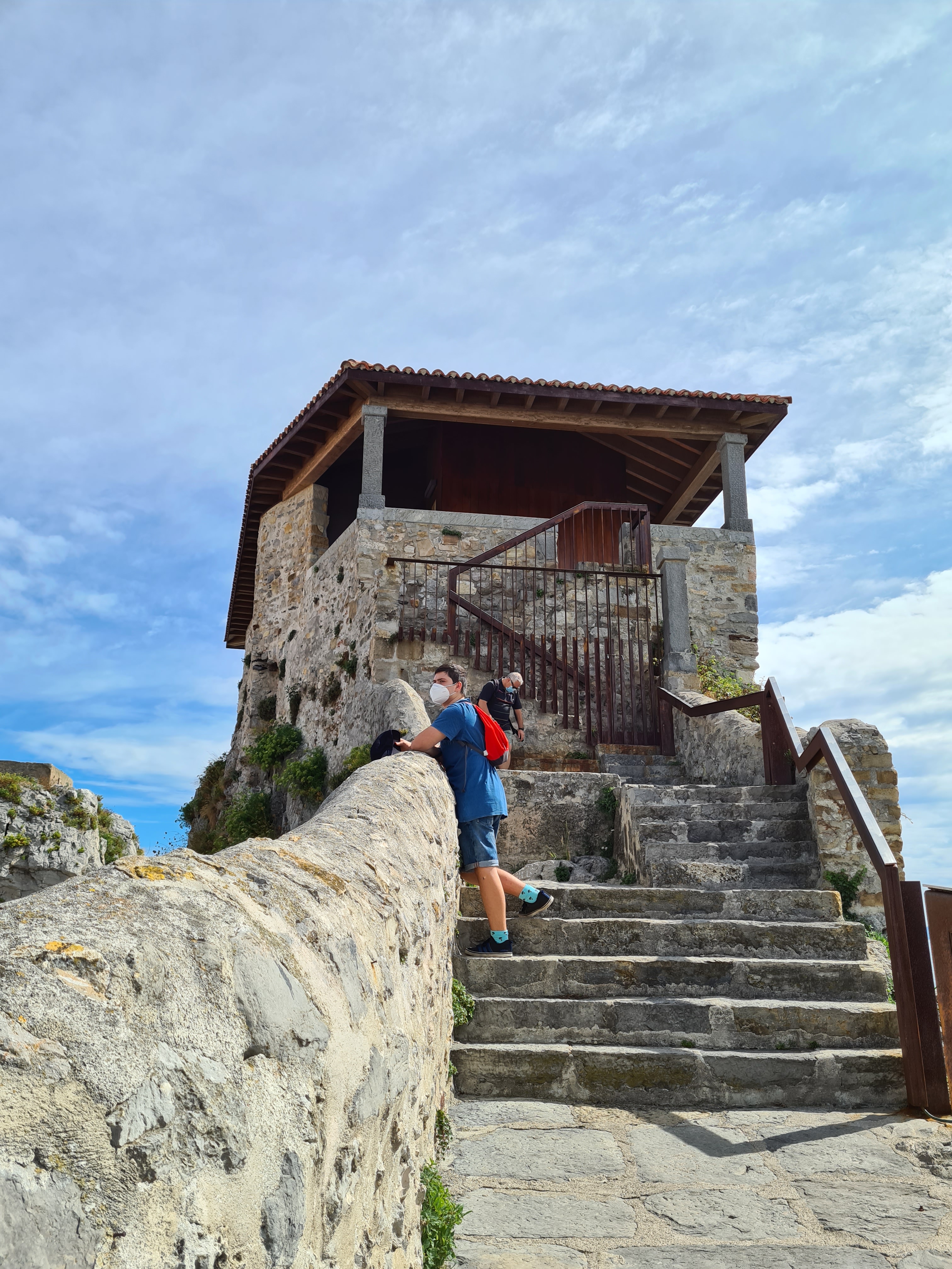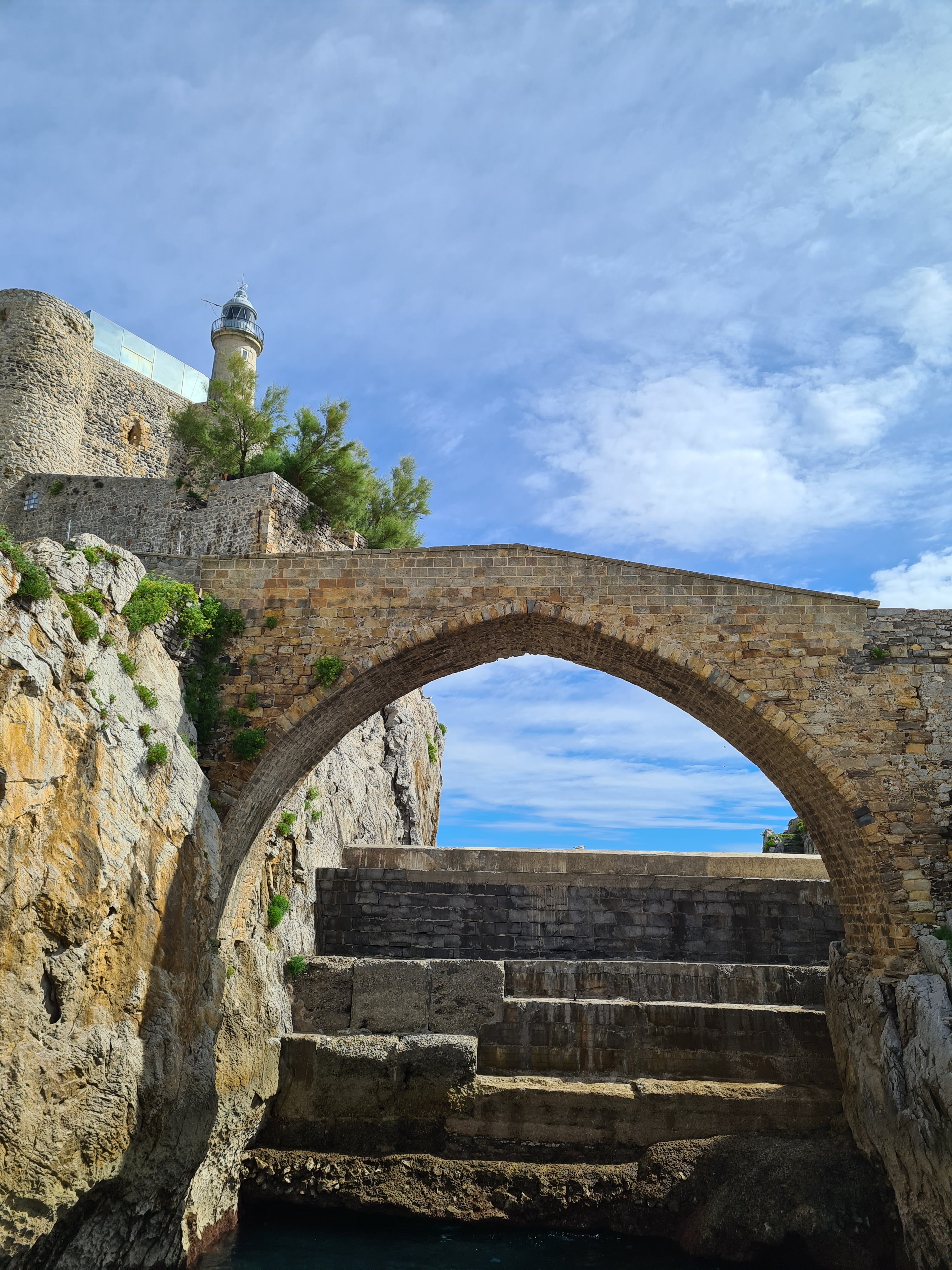 Hay que volver a subir las pronunciadas escaleras, pero fáciles y desandar todo el camino andado por las galerías. Caminando hacía el viejo faro, miramos hacia atrás y nos encontramos esta vista.