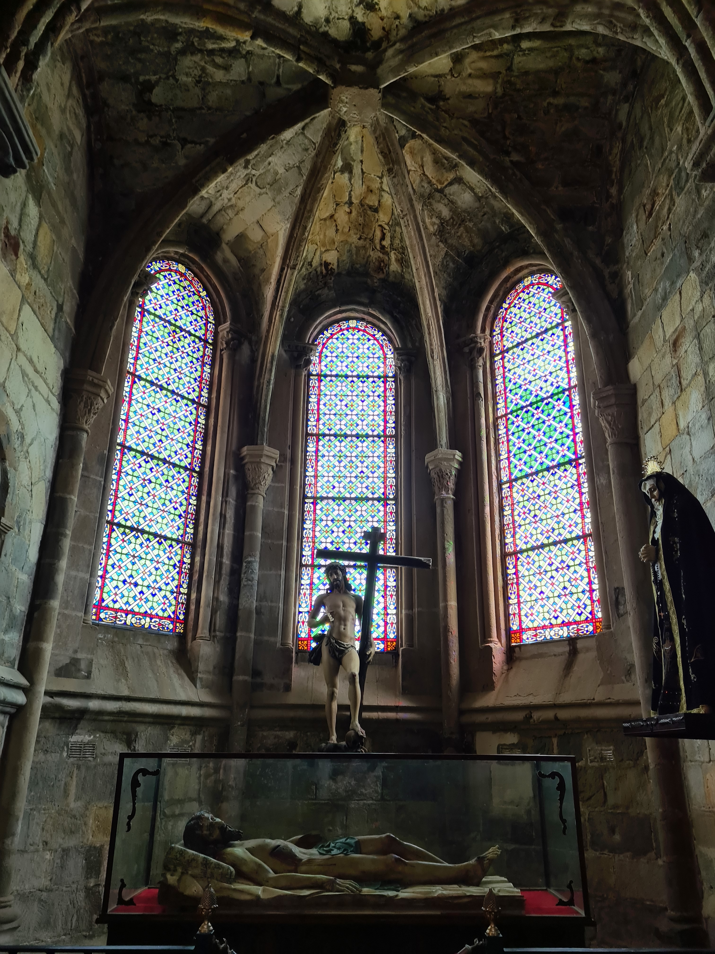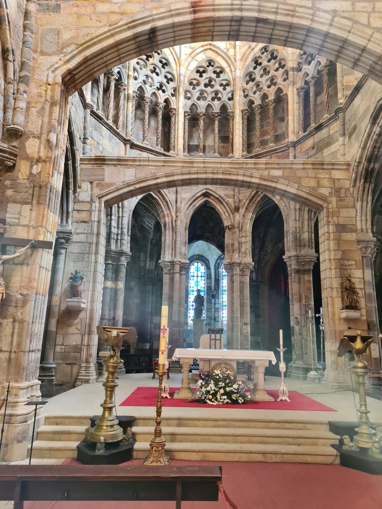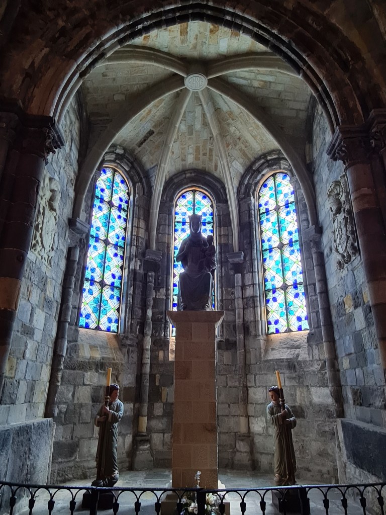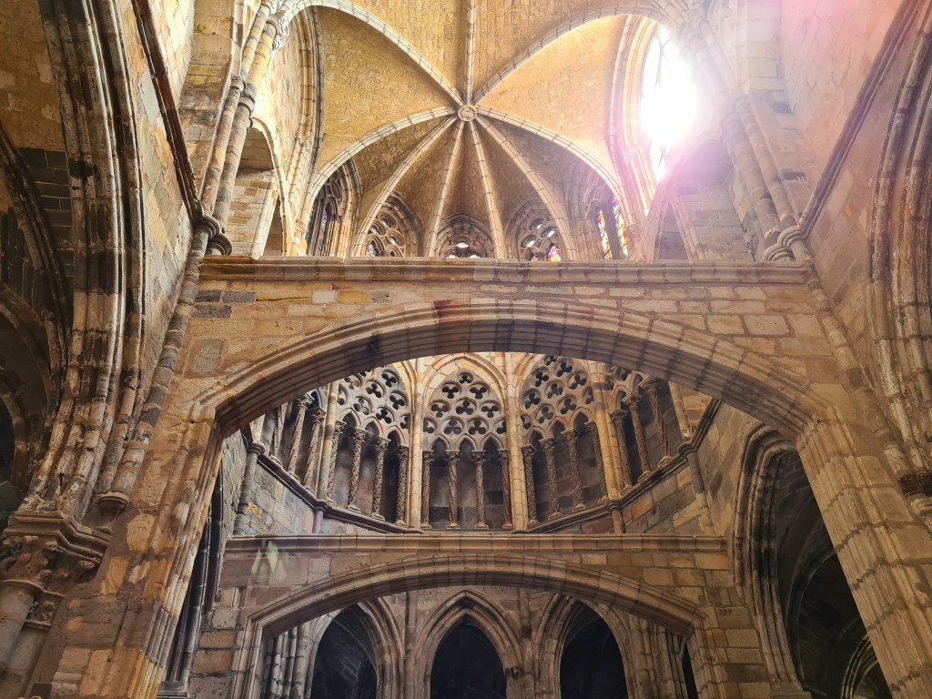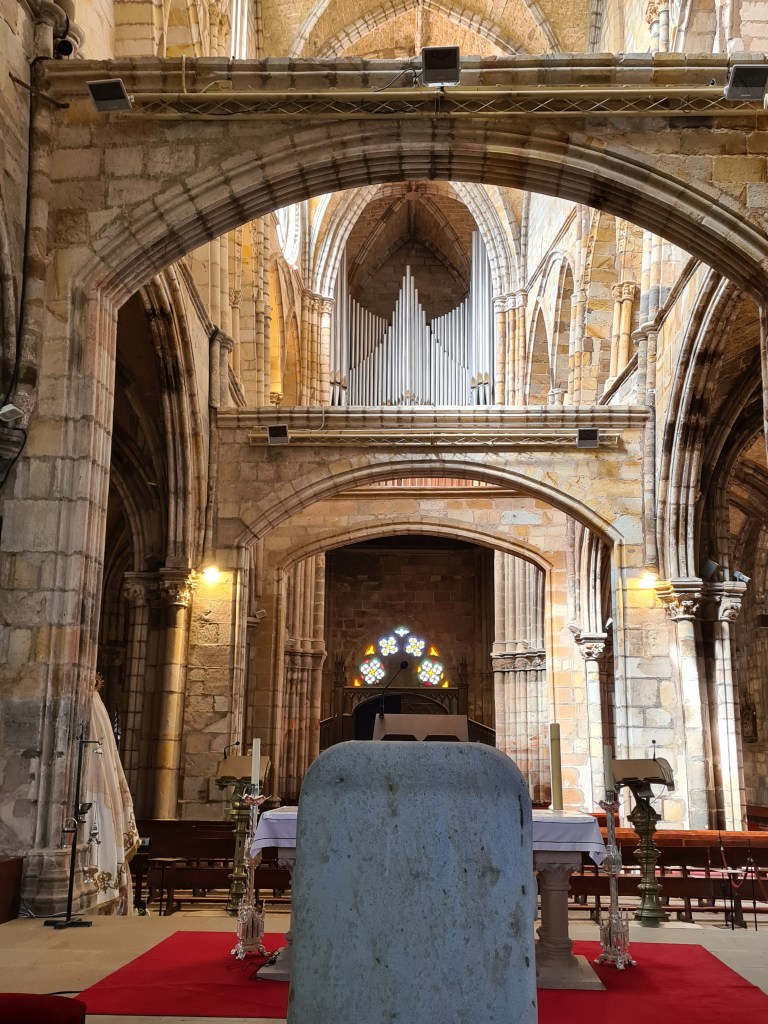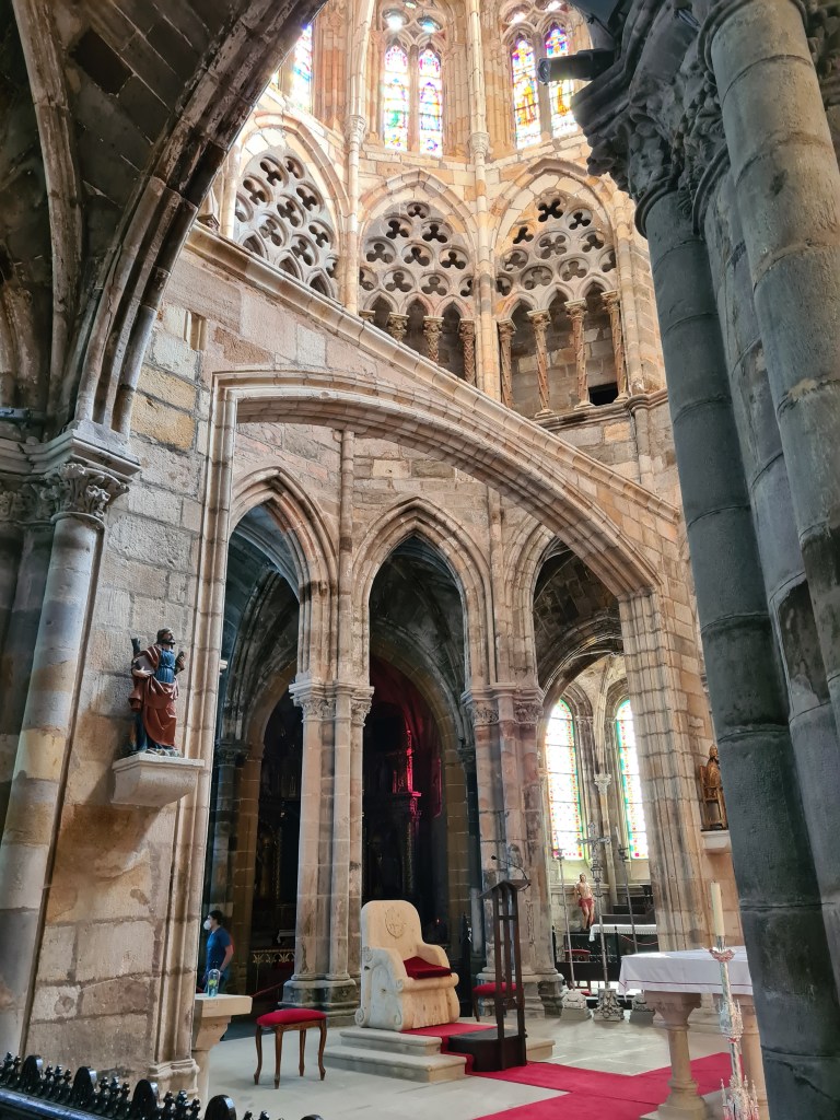 Atravesamos una puerta con arco para llegar a la iglesia de la Concepción, actualmente desacralizada, así que podemos movernos como en nuestra casa. Puedes subir y entrar en las hornacinas que en su día fueron ocupadas por imágenes. No es una falta de respeto, es diferente, la verdad es que pasamos un rato divertido. De momento está en proceso de restauración, y quieren que vuelva a ser un lugar de culto, pero no se ve nada que haga ver que va a ser pronto.