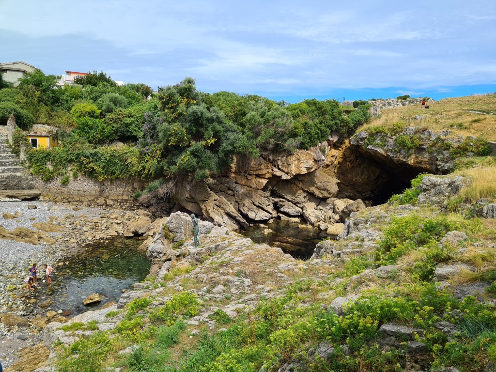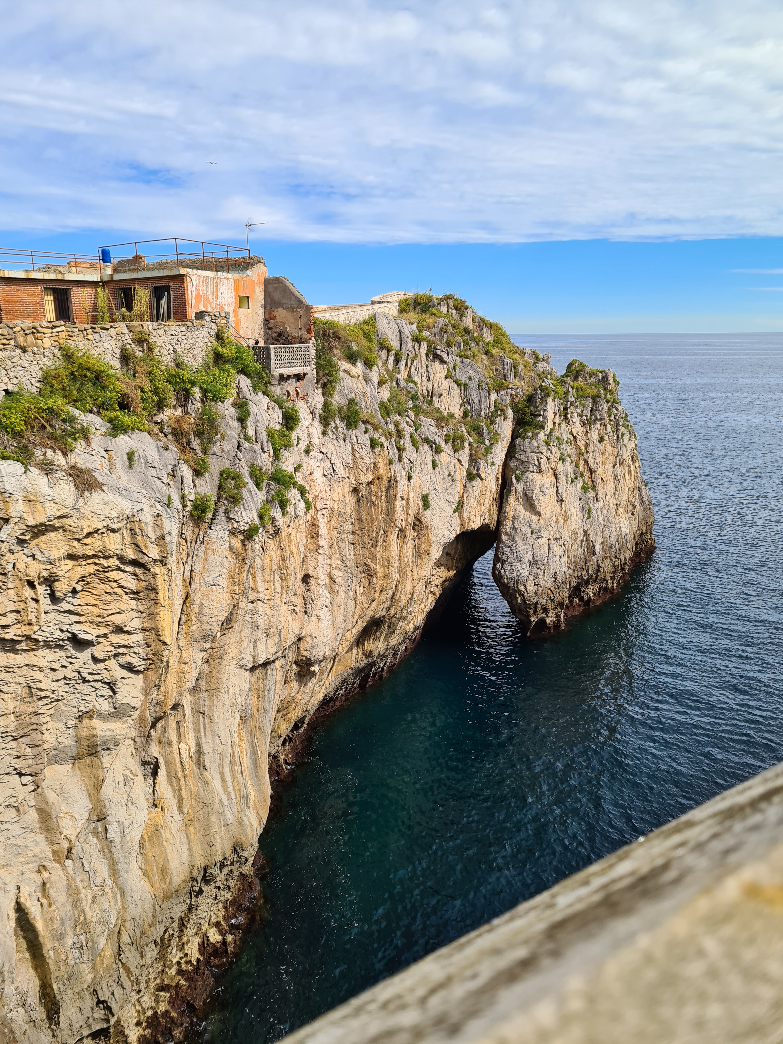 Bajo a la playa, por supuesto, hay una gran cueva que imagino se llenará de agua cuando sube la marea. Una ola casi nos pilla a los osados que hemos bajado… El arco es muy curioso (no te cuento su historia porque de verdad quiero que vayas a Melilla y hagas esta visita 😉) se llama arco parabólico y su función es apuntalar la cueva.
