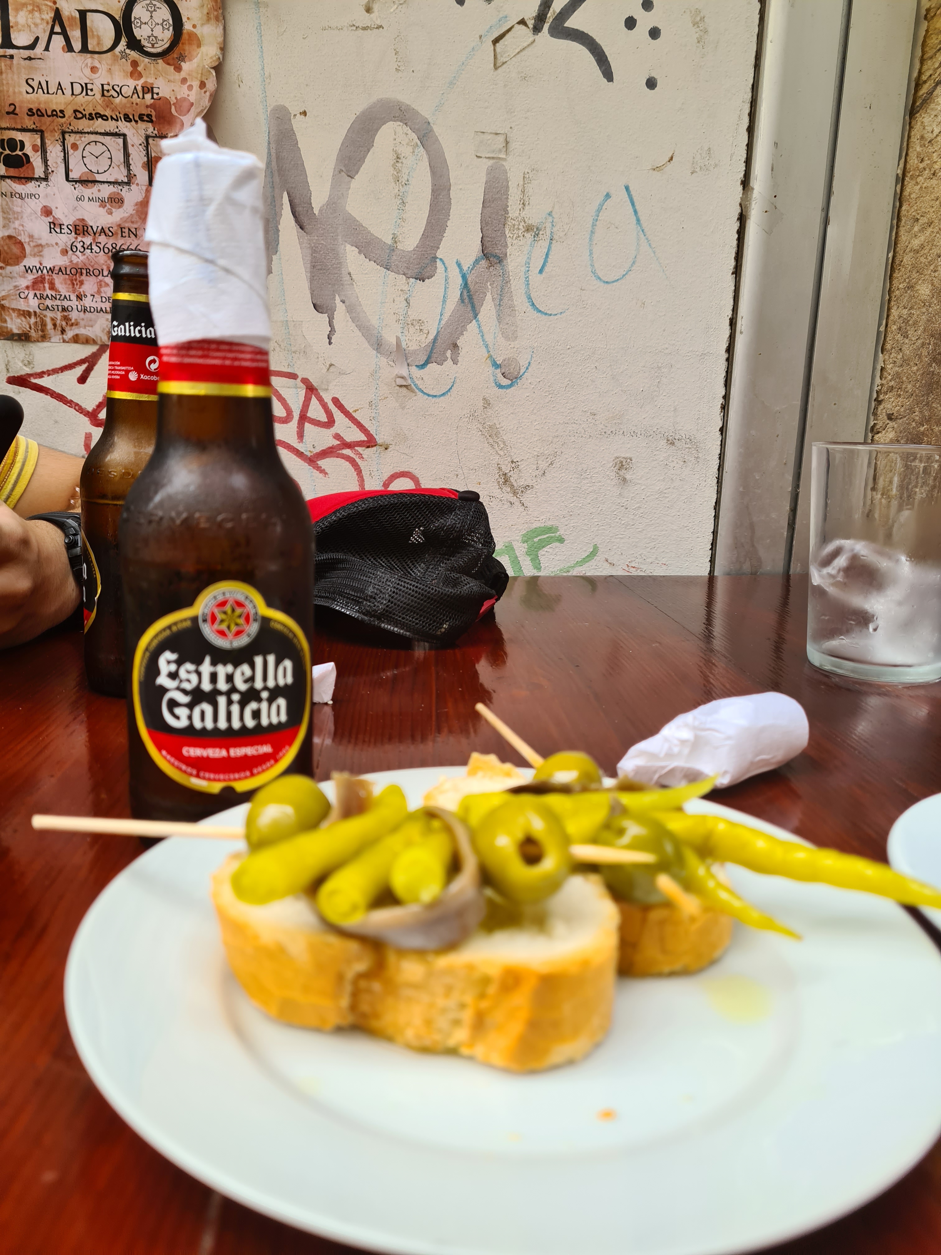 Habíamos visto una taberna andaluza con buena pinta, pero no, no sé porque (el día anterior la vimos llena), no nos hicieron mucho caso, tenían comidas en el interior y nos ignoraron bastante, así que repetimos en un bar en el que ya habíamos estado antes de ir a La Cervecería, comiendo unos ricos cucuruchos de embutido y unos bocadillos muy buenos.