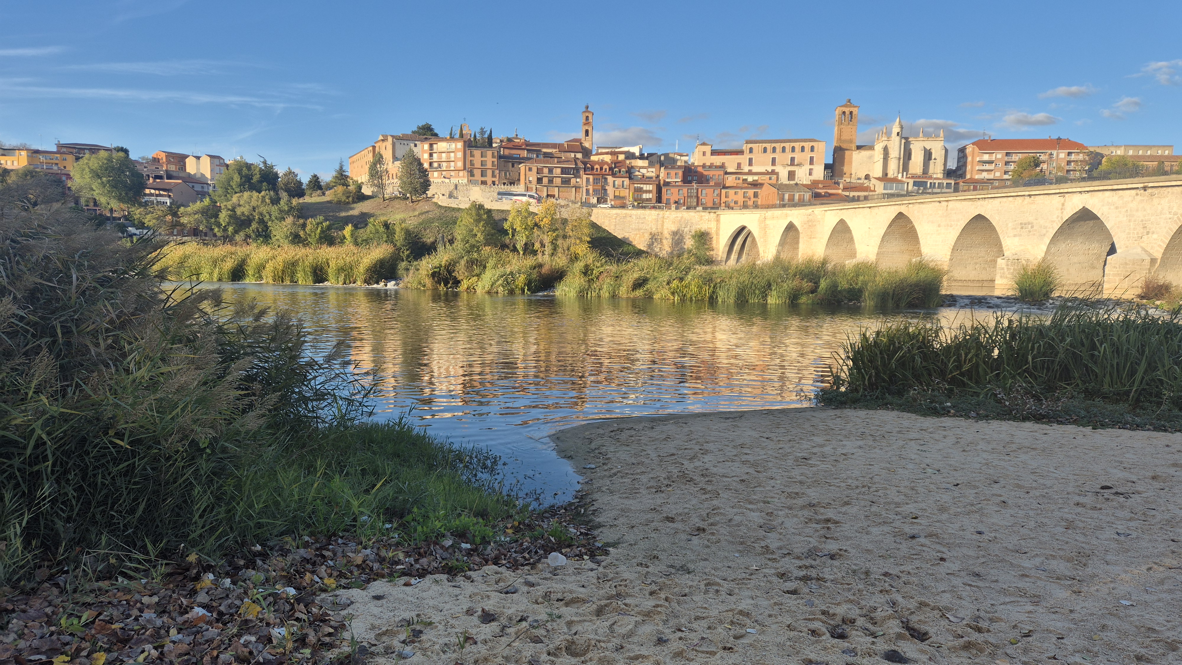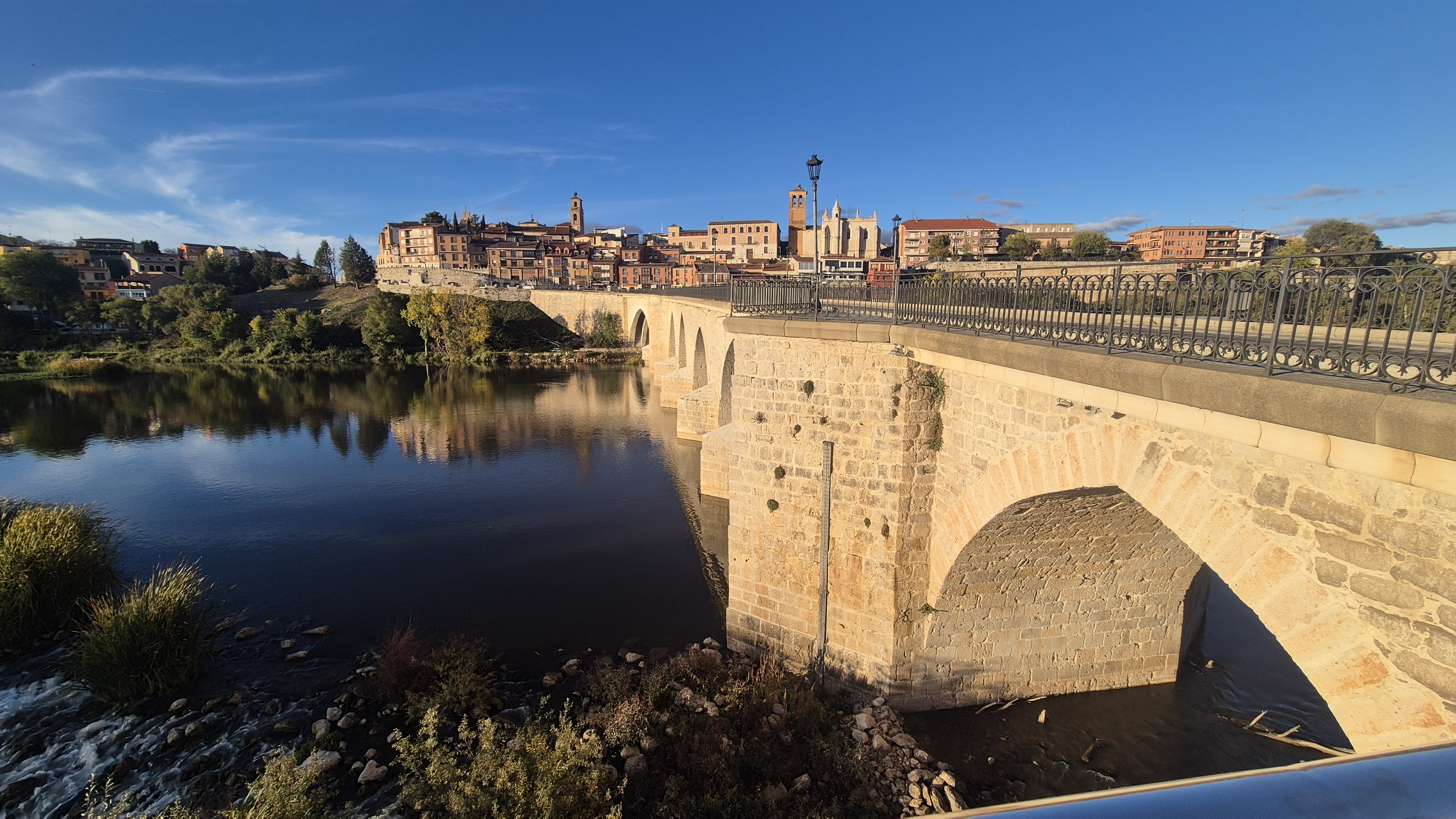 Termina una visita de esas que dejan huella por lo bonita y especial que ha sido. La verdad es que nos cuesta volver a casa, pero esta vez no nos quedamos a dormir, solo pasamos por Tordesillas para ir a la que es mi vista favorita, ver la ciudad desde el río Duero con su Puente Medieval a la derecha. Vemos que han restaurado el puente, que han puesto una plataforma que sobre sale de él para que se vean y se explique lo que es una aceña.