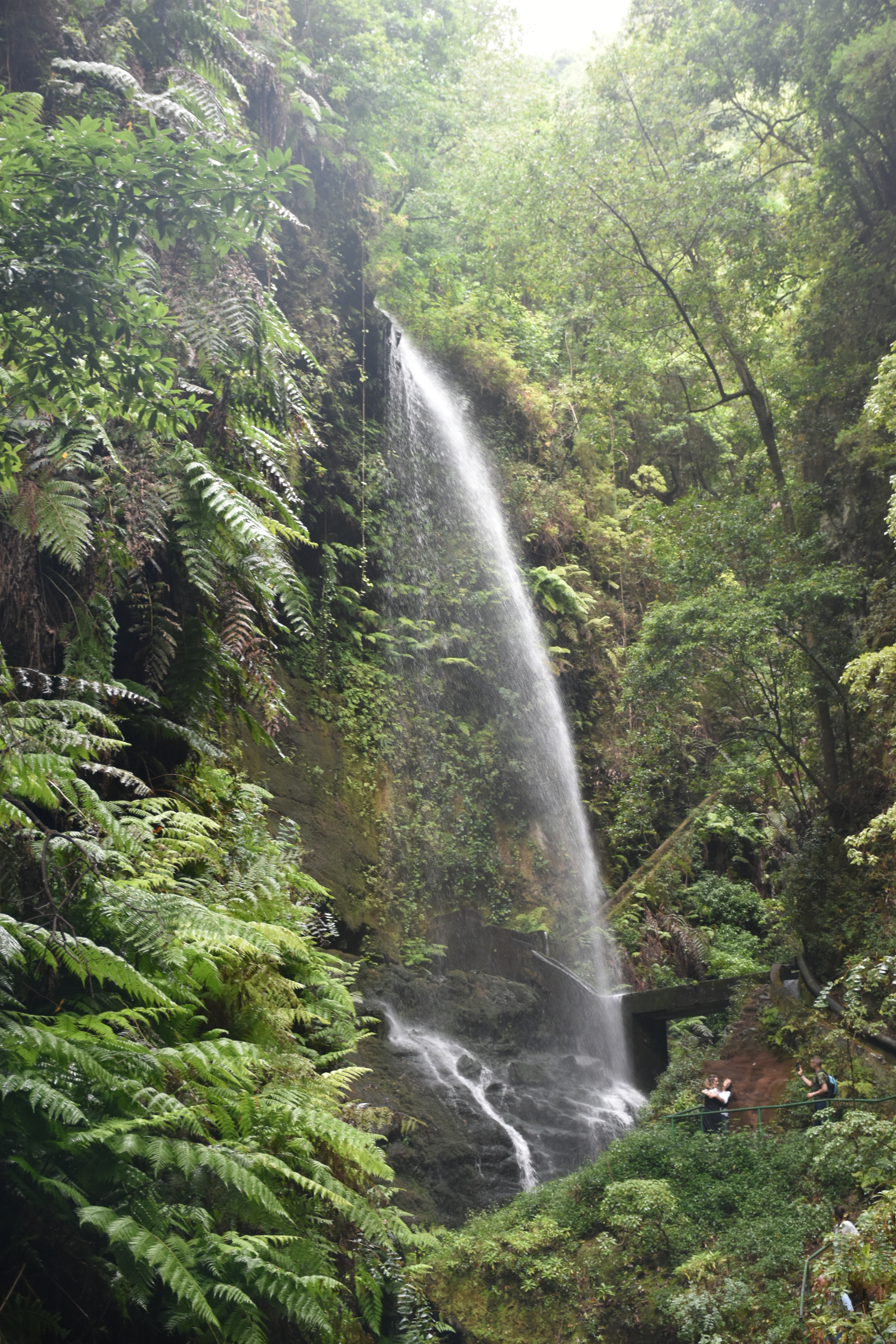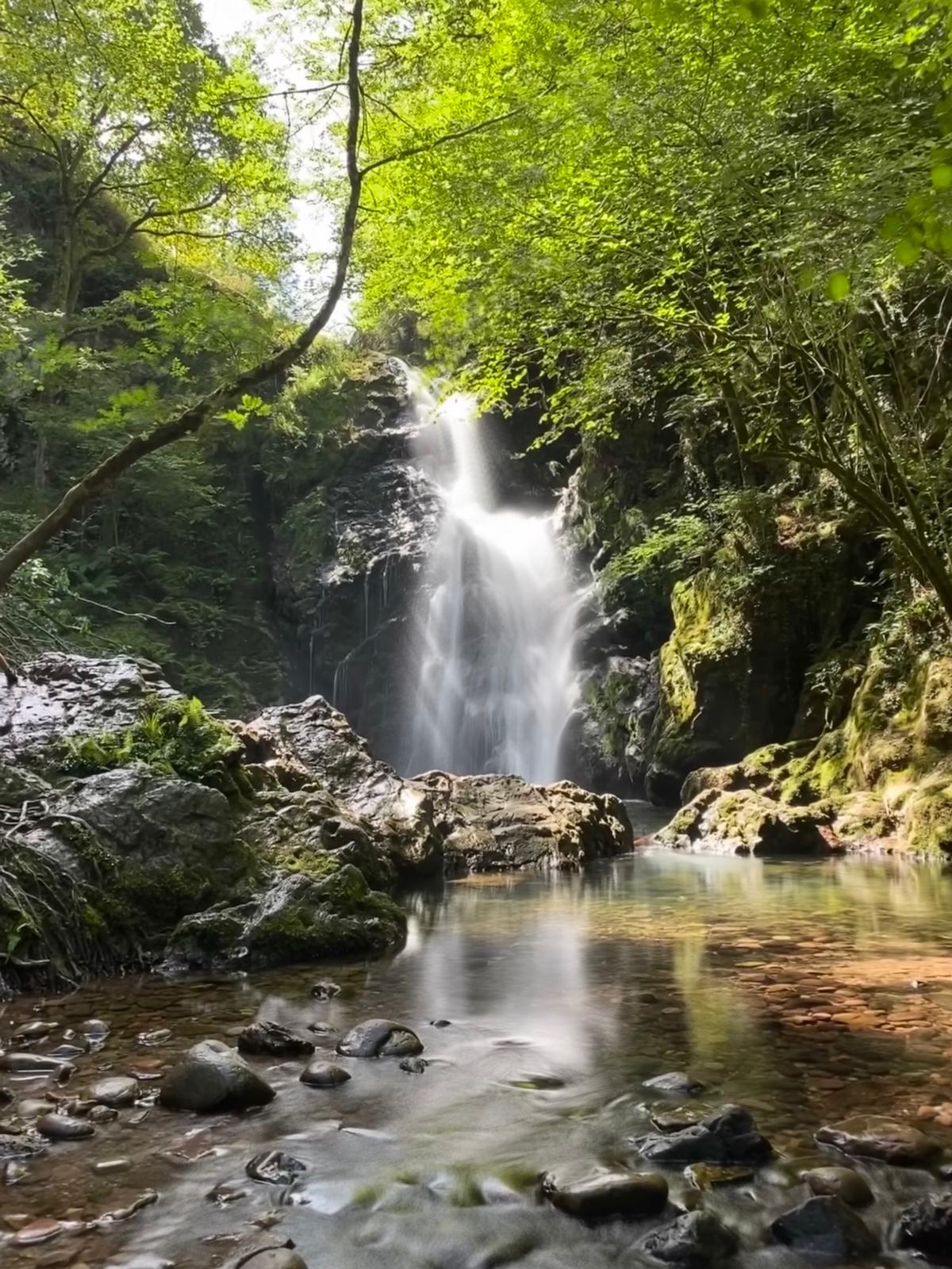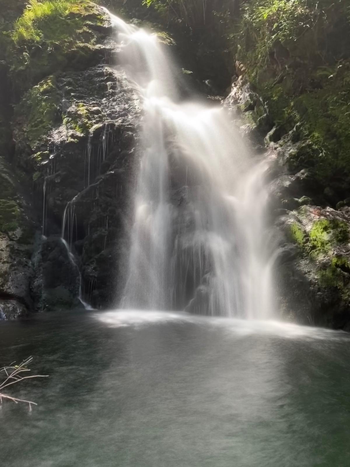 Nosotros hemos subido como a las dos de la tarde (siempre a buenas horas🤣🤣) por eso apenas hay personas, podemos disfrutar tranquilamente del lugar. En la parte alta del salto, aparecen dos personas que parecen que van a bajar por la cascada haciendo rapel, ¡se ven bonitos los dos puntos rojos en las rocas!