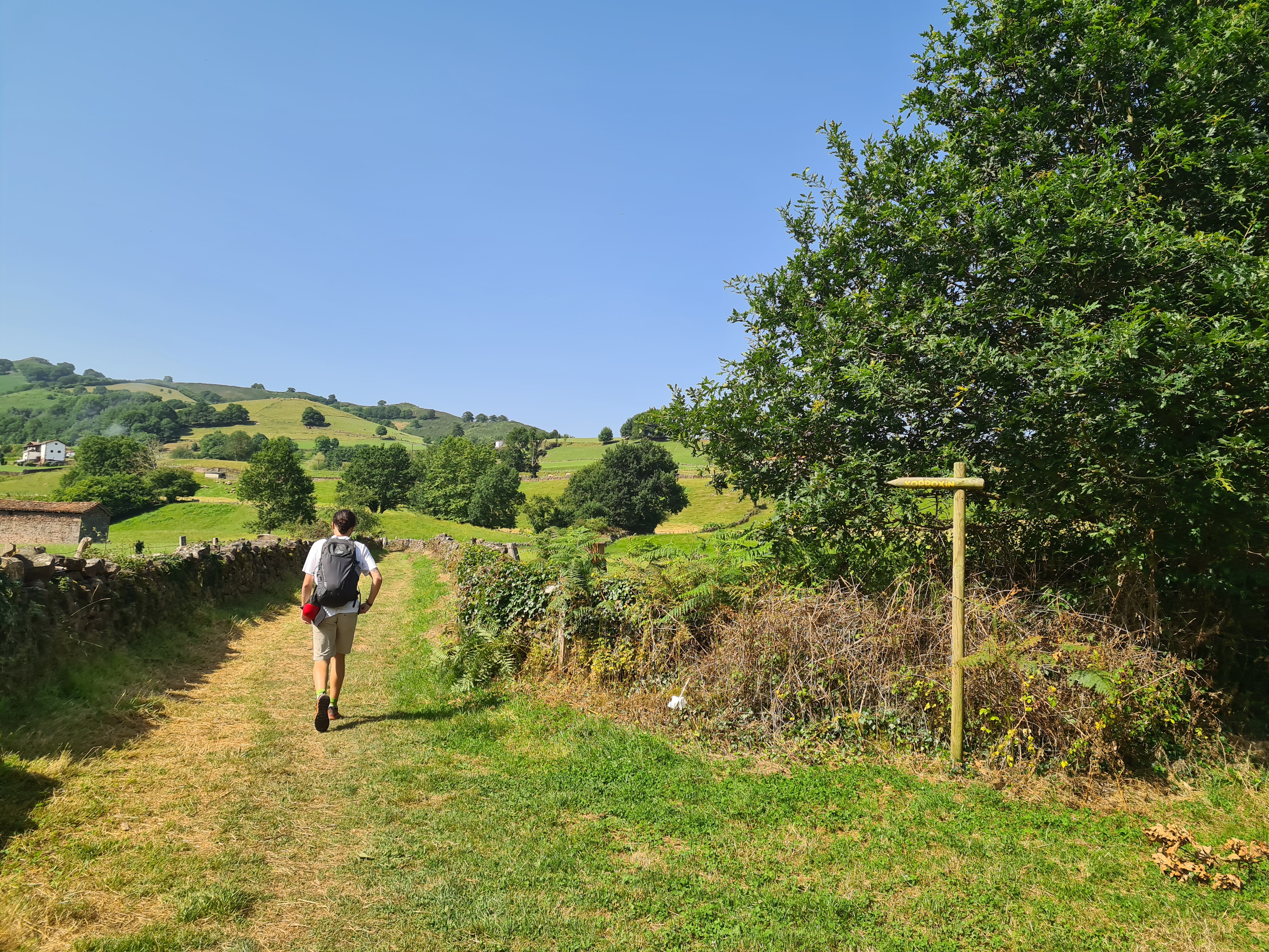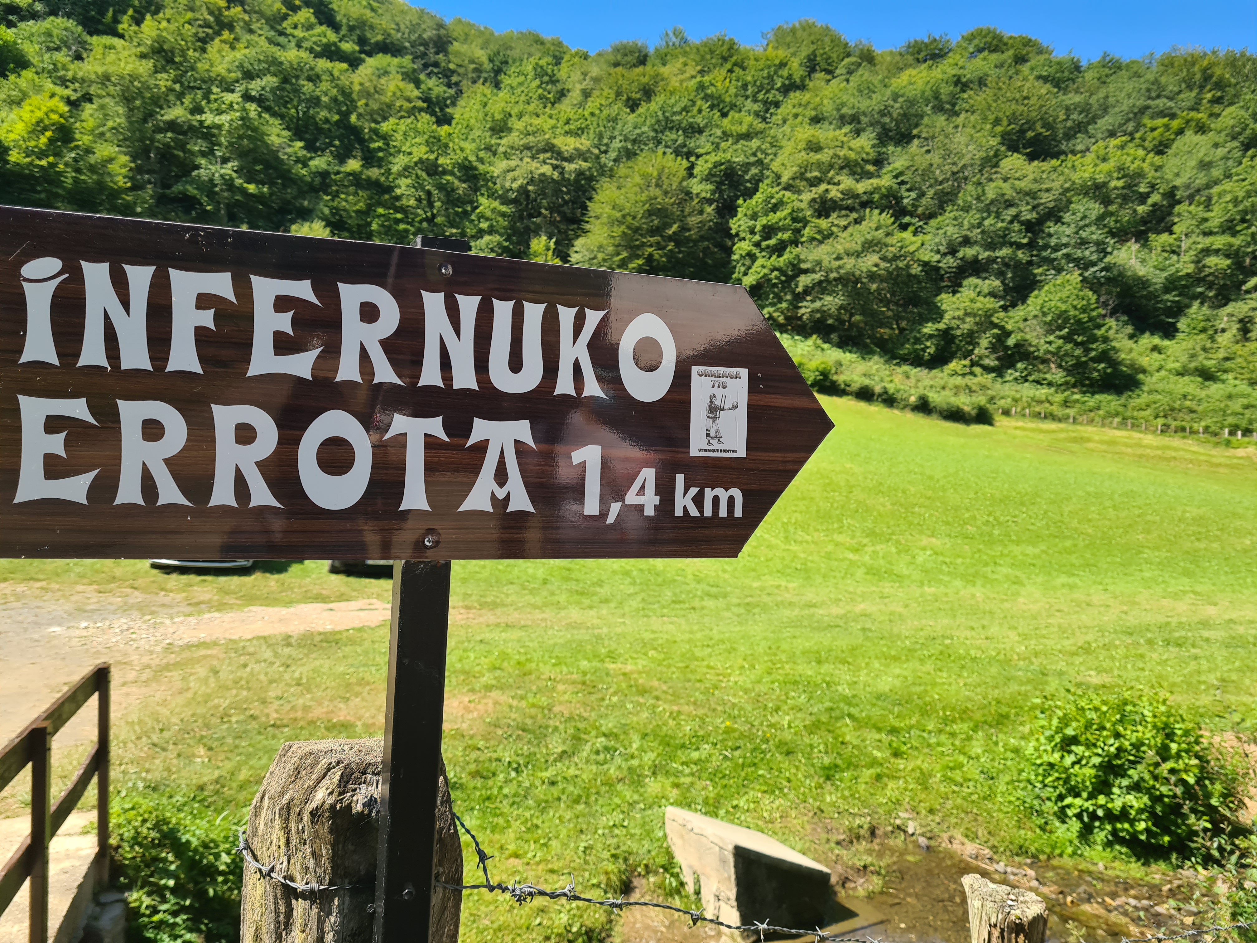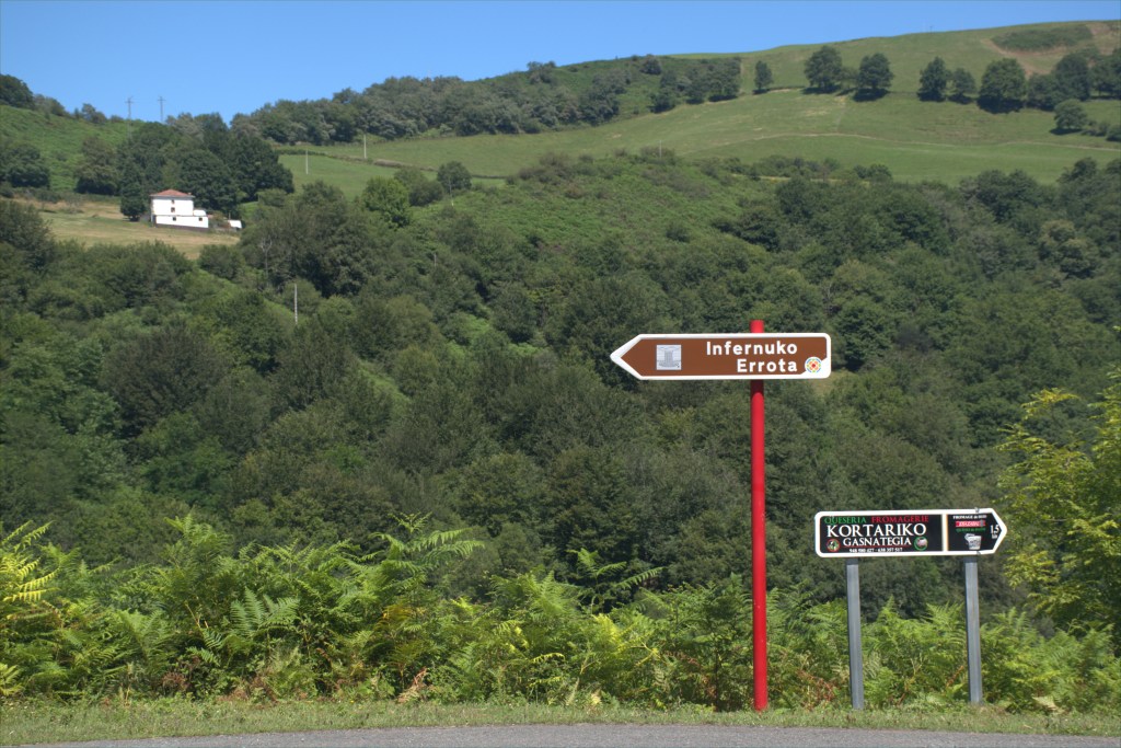 Dejamos la gasolinera y el camino de tierra a la derecha, entrando de lleno en la antigua N-1. Hay que pasar por una puerta metálica (abierta por el centro) hasta un desvío en el que empieza un camino estrecho de tierra con dos postes. (Desde ahí ya no está señalizado).
