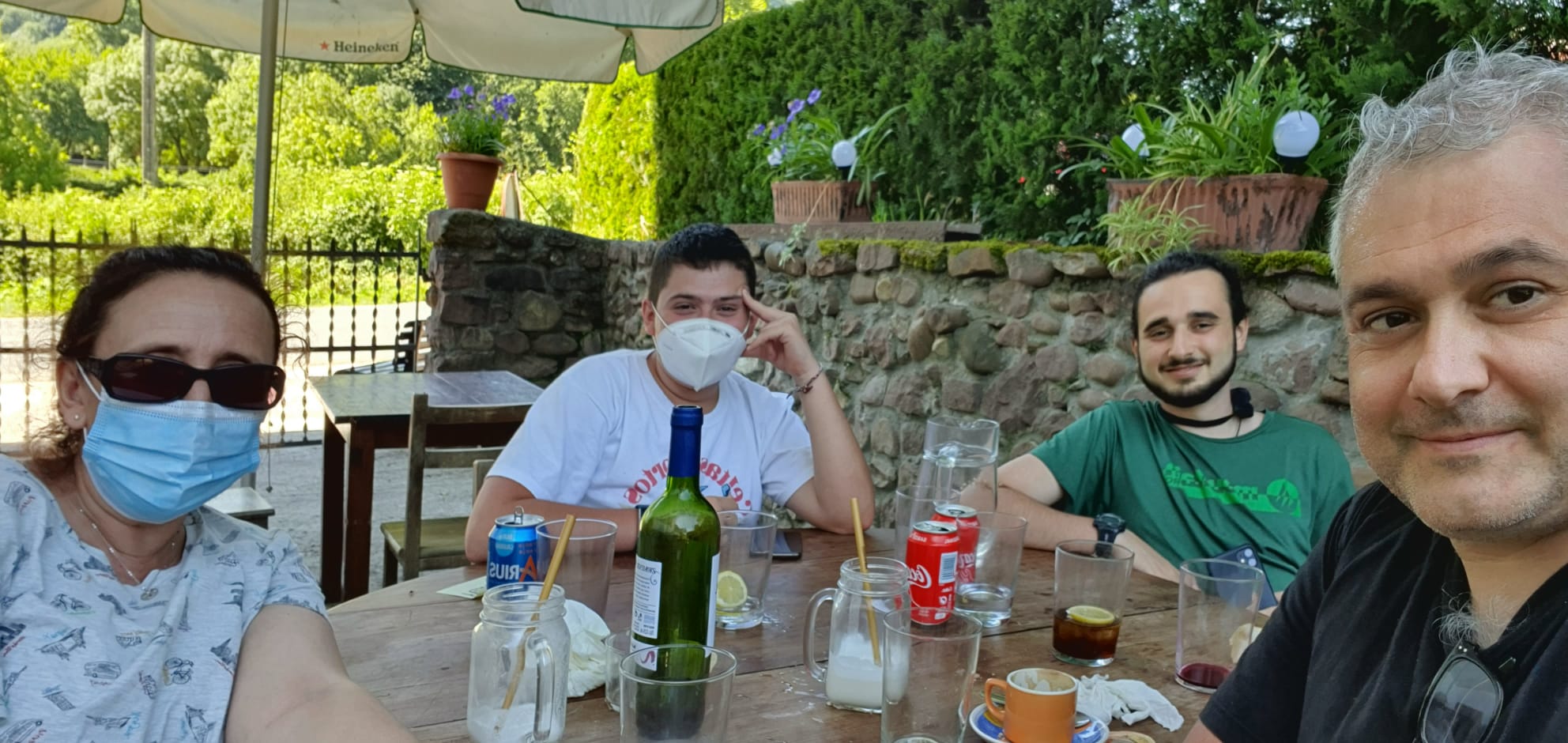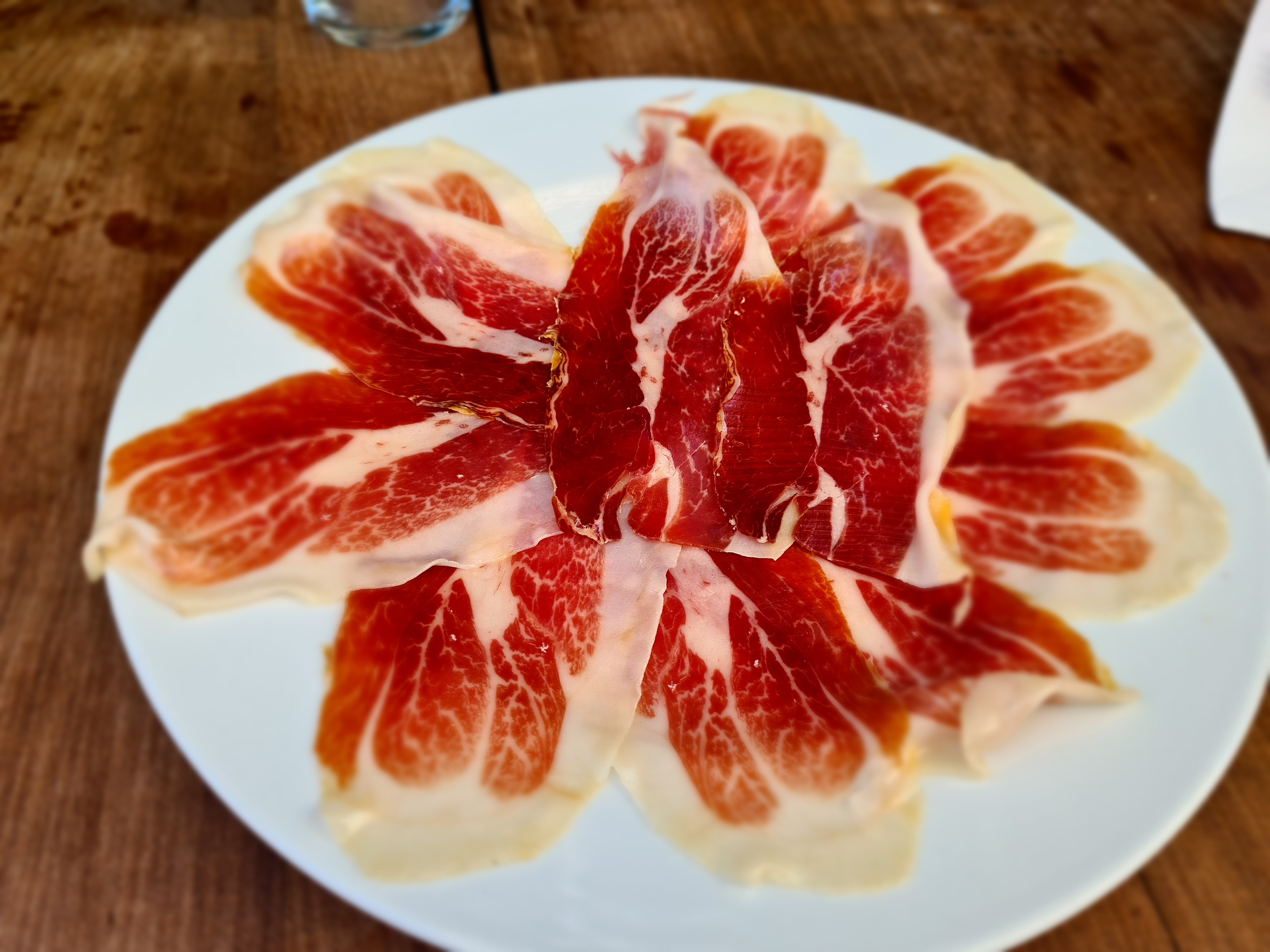 Empezamos a bajar para volver a recorrer el camino andado, las piedras, la N-1 y llegar al Puerto, donde hay dos bares y ver si podemos comer, son las 3 muy pasadas. Nos decantamos por el que es hotel y no está nada mal. Hotel Puerto de Somosierra. Entrecot y chuletillas con patatas fritas que están de muerte (igual que los pimientos).