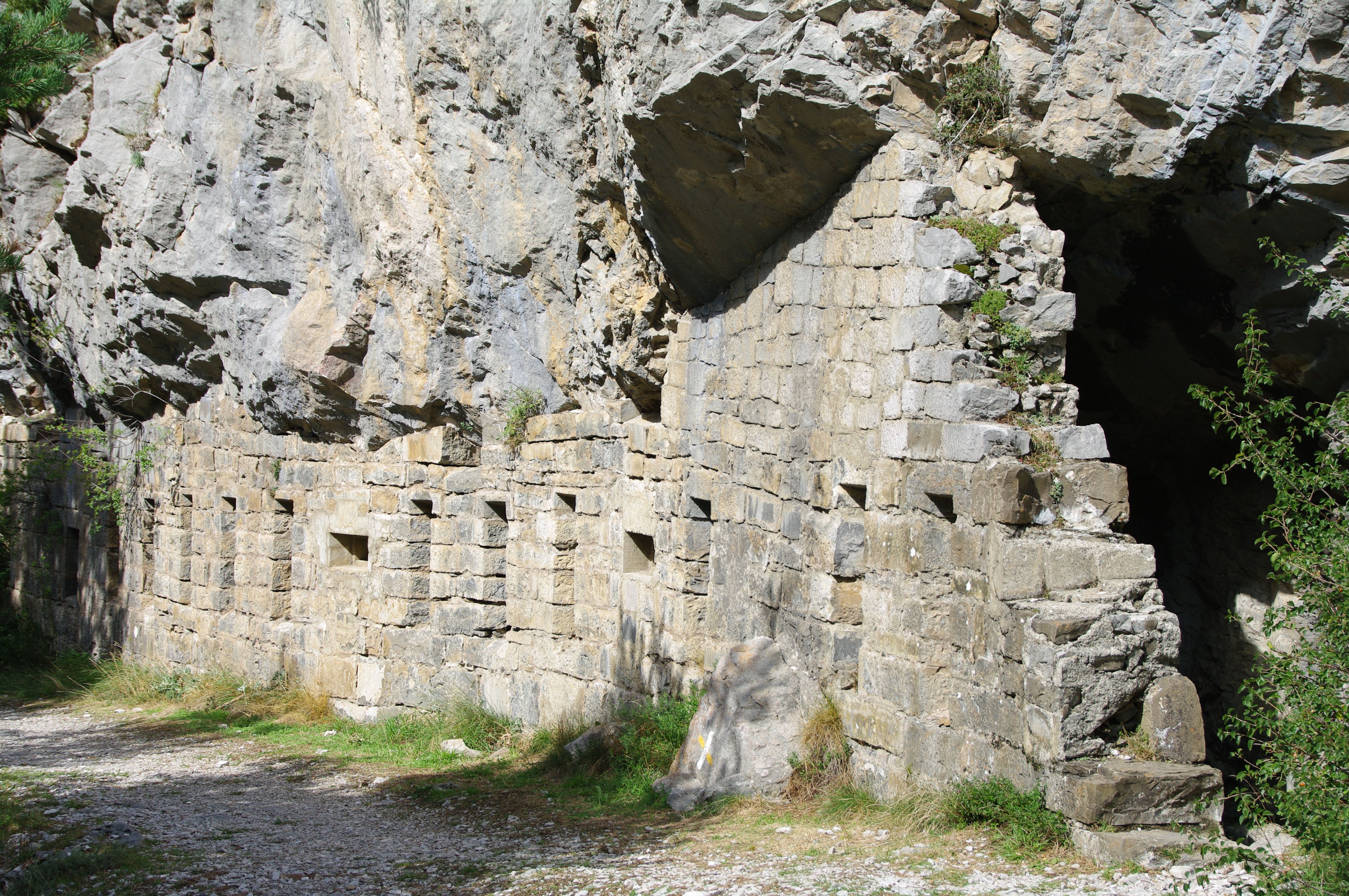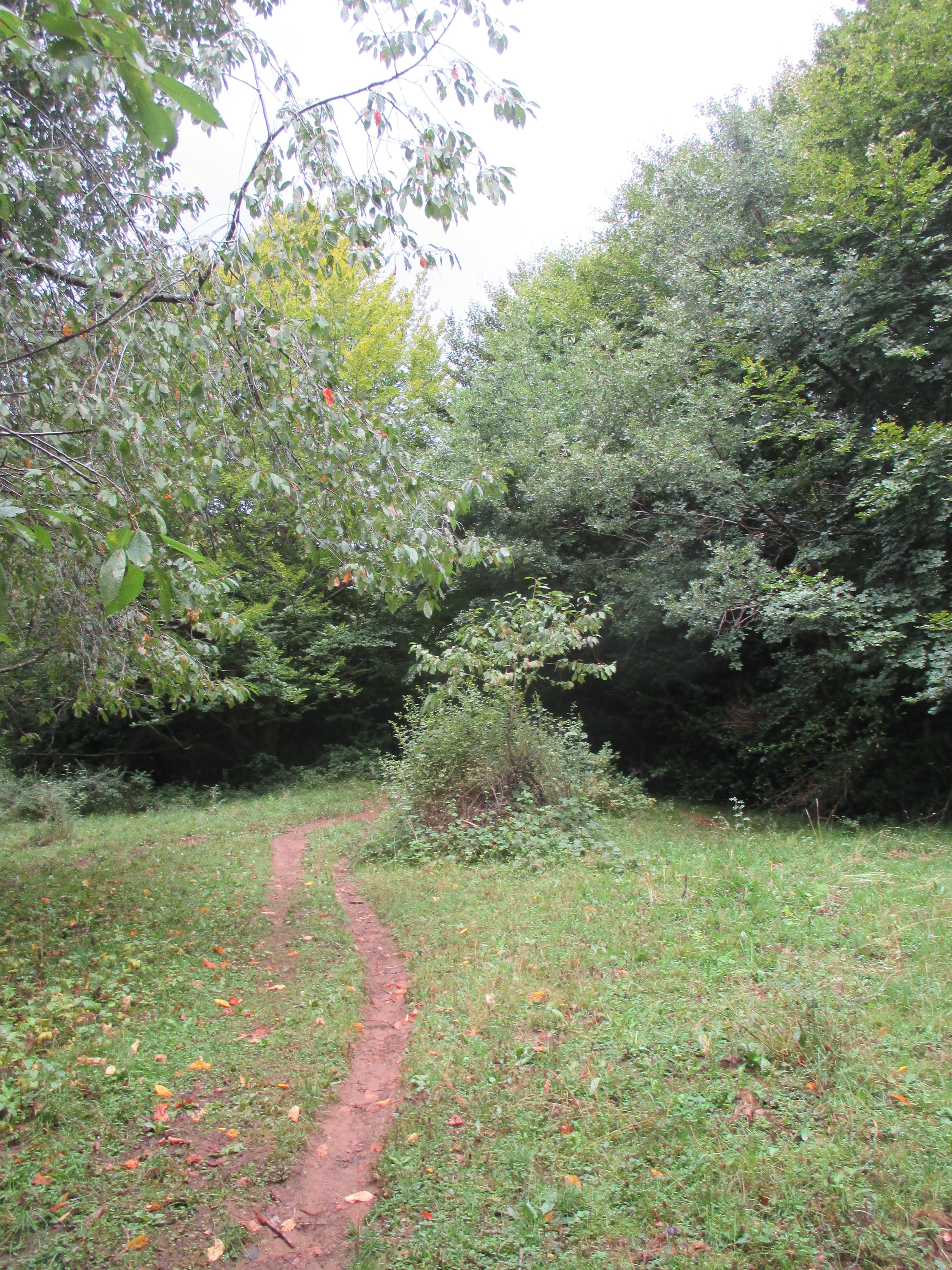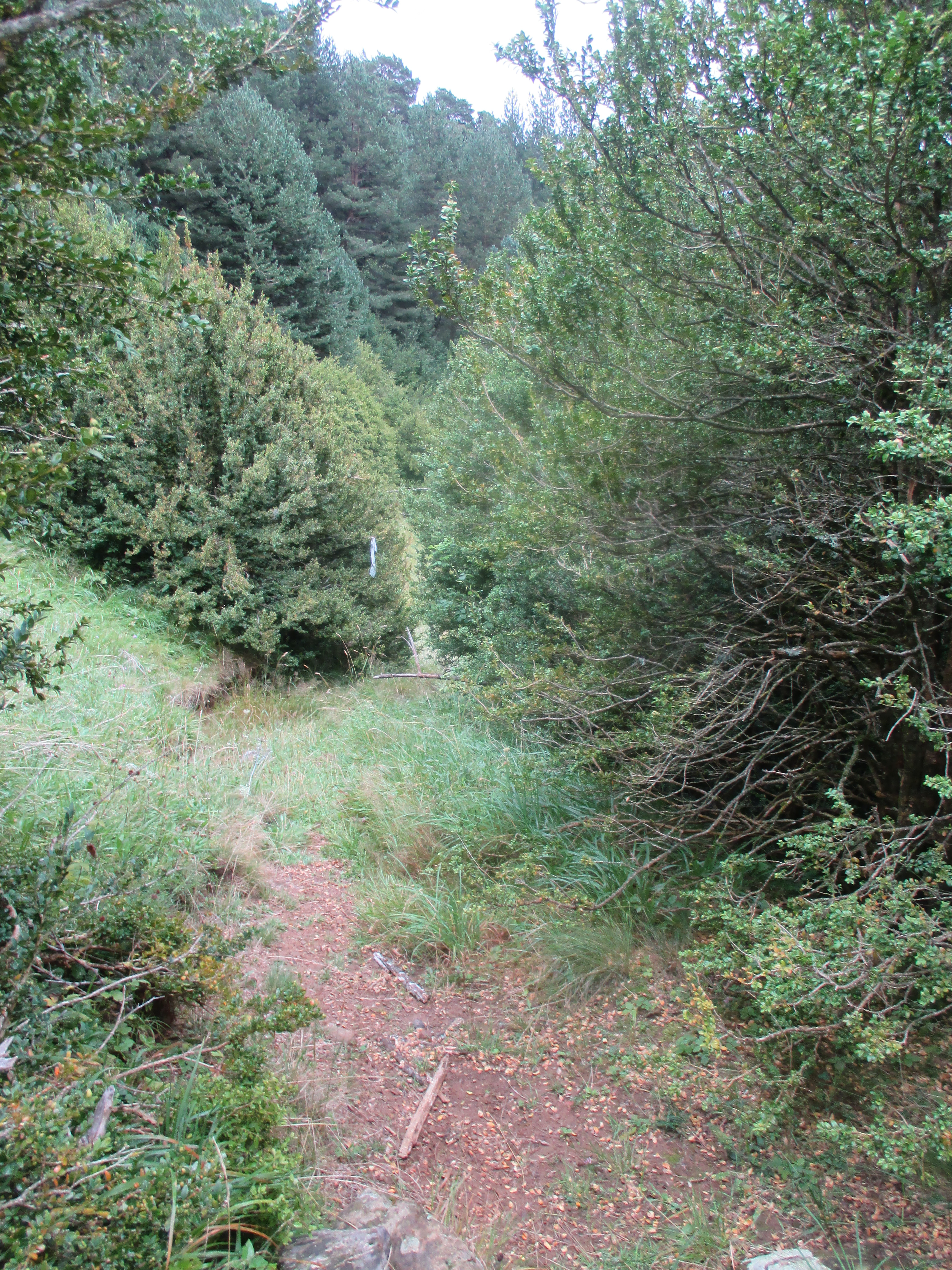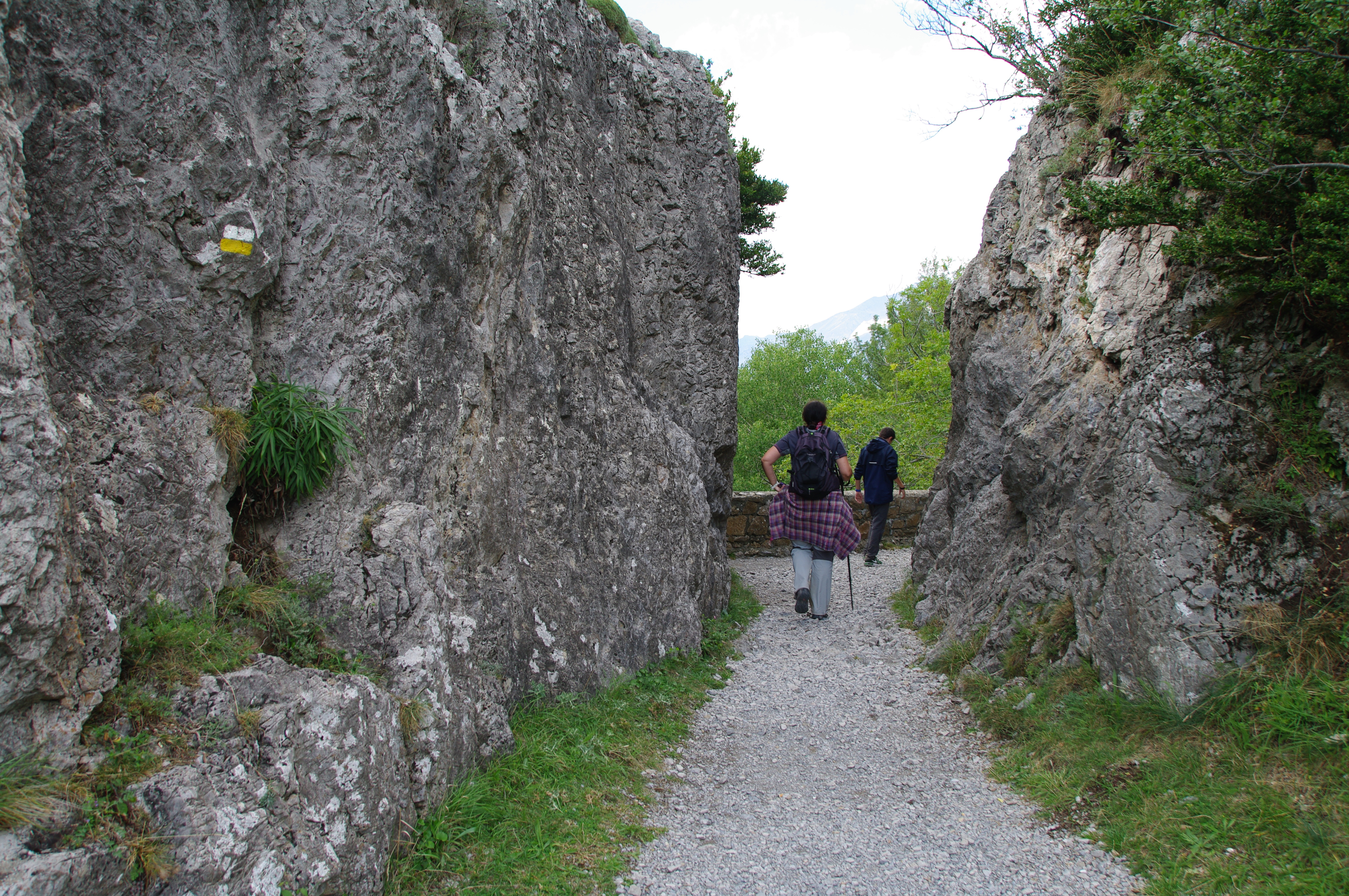 Dejamos la gasolinera y el camino de tierra a la derecha, entrando de lleno en la antigua N-1. Hay que pasar por una puerta metálica (abierta por el centro) hasta un desvío en el que empieza un camino estrecho de tierra con dos postes. (Desde ahí ya no está señalizado).