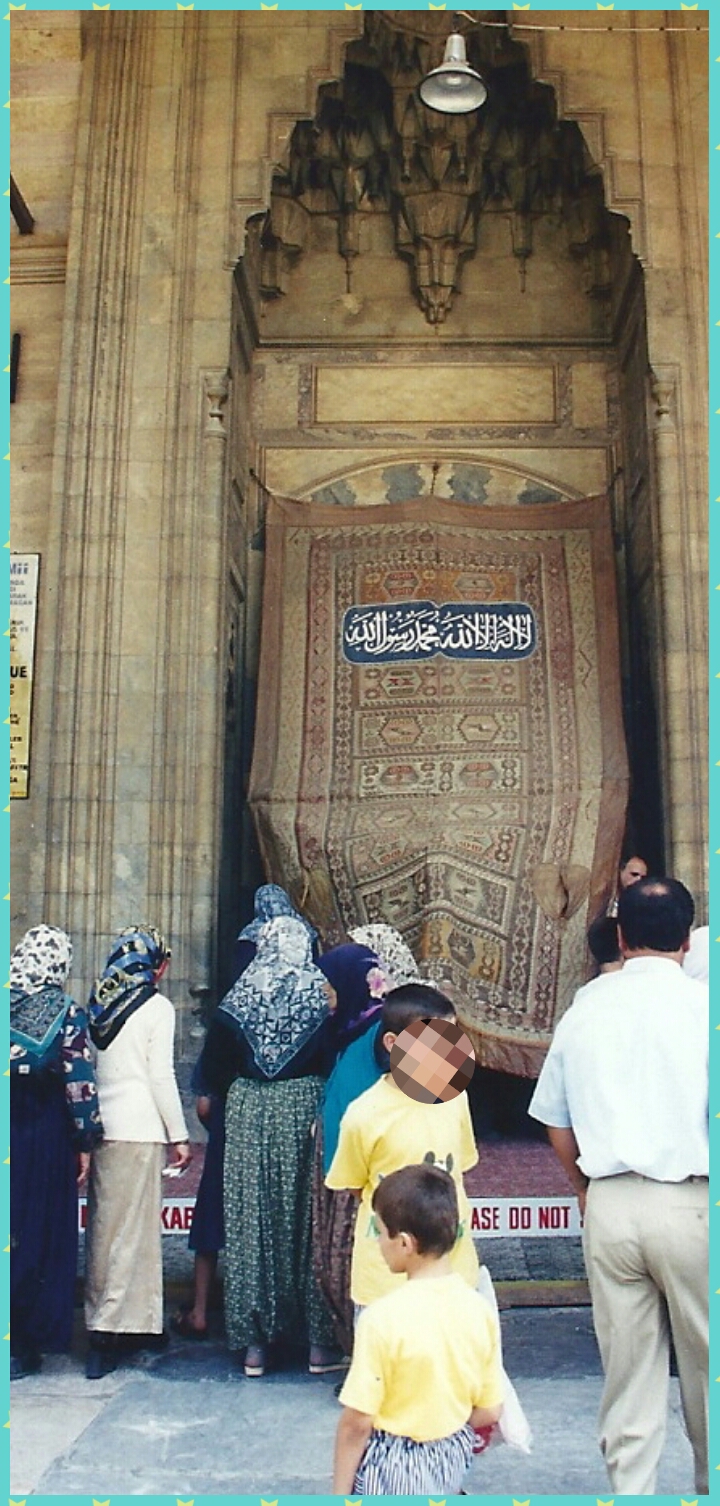 La primera mezquita que vimos de Estambul fue la de Eyub http://cometeelmundo.net/2014/3/el-barrio-de-ey%C3%BCp-un-paseo-por-el-barrio-m%C3%A1s-conservador-de-estambul Coincidió que se celebraba un rito que no supimos bien, pero al que los niños iban con unos trajes de gala, muy recargados (como los nuestros de comunión), por lo que sólo pudimos estar en el patio y en los alrededores de la Mezquita.
