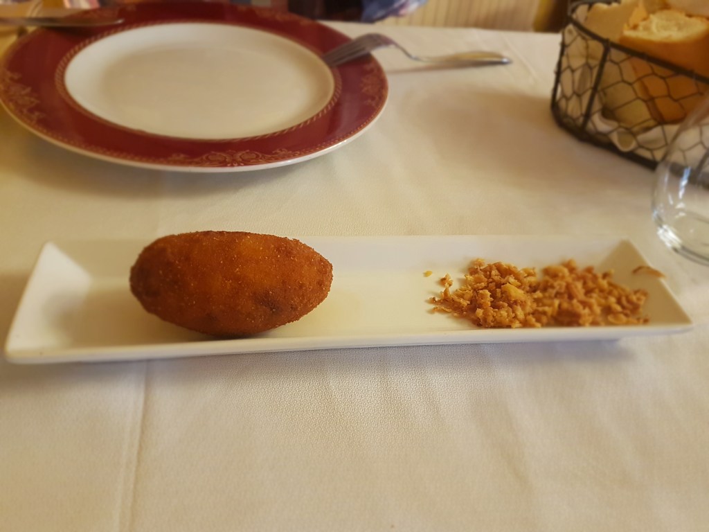 ¡¡¡¡Todo buenísimo!!! los rollitos de cecina, la croqueta que no consigo acordarme de qué era y esas chuletillas,… ¡Soy capaz de recordar su sabor! Teníamos el restaurante sólo para nosotros y un buen vino. ¡MOMENTO PERFECTO!