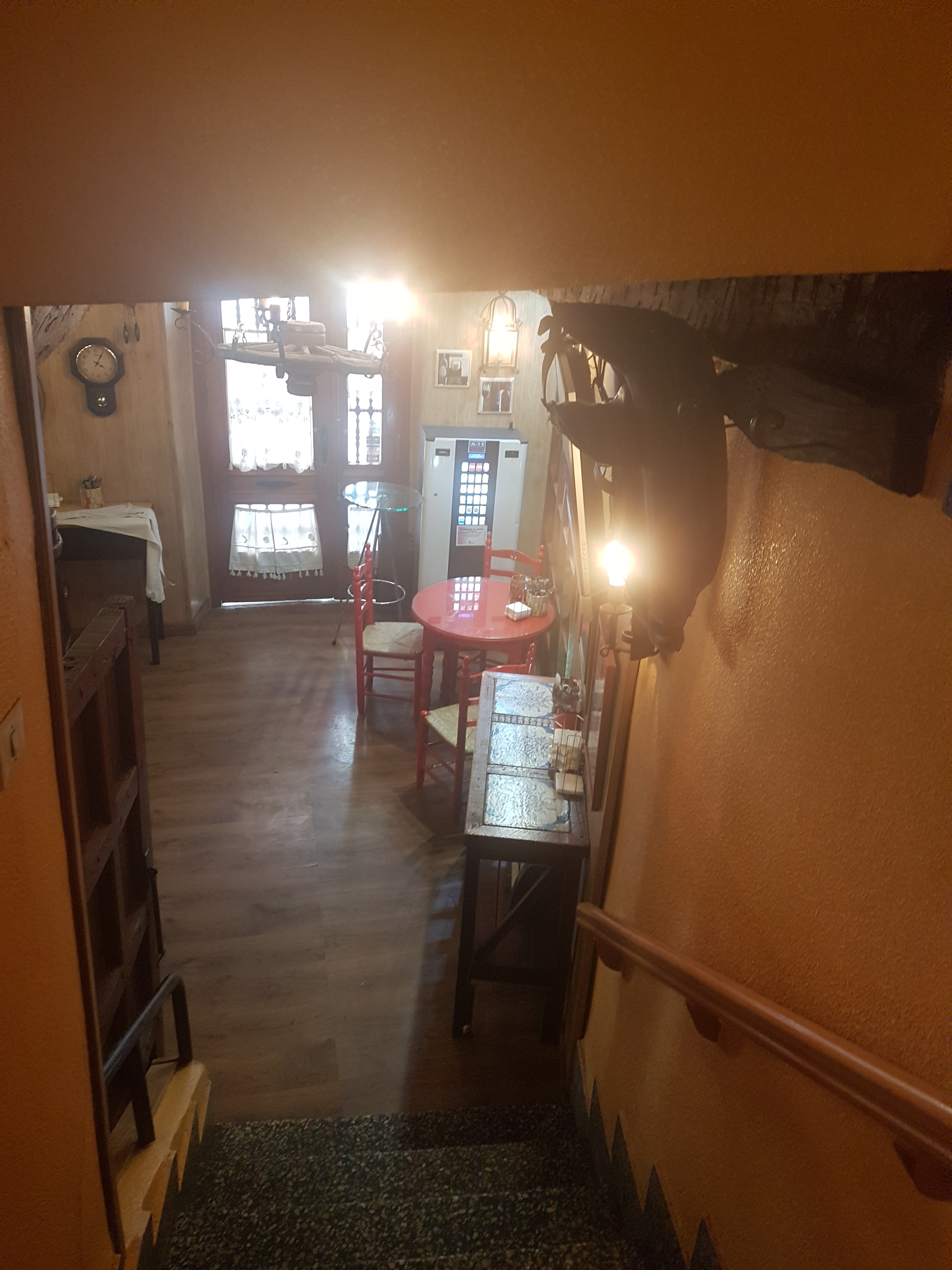 Como nuevos nos vamos al restaurante y por encontrar un pero en el fin de semana, diré que están haciendo obras en esa parte del hotel, la que accede por el interior al bar restaurante, teniendo que ir por fuera, por la carretera que lleva del bar al hotel, pero bueno, nos sirve de paseo y de contemplar el exterior. Es el mismo sitio en el que tenemos el desayuno durante el fin de semana.