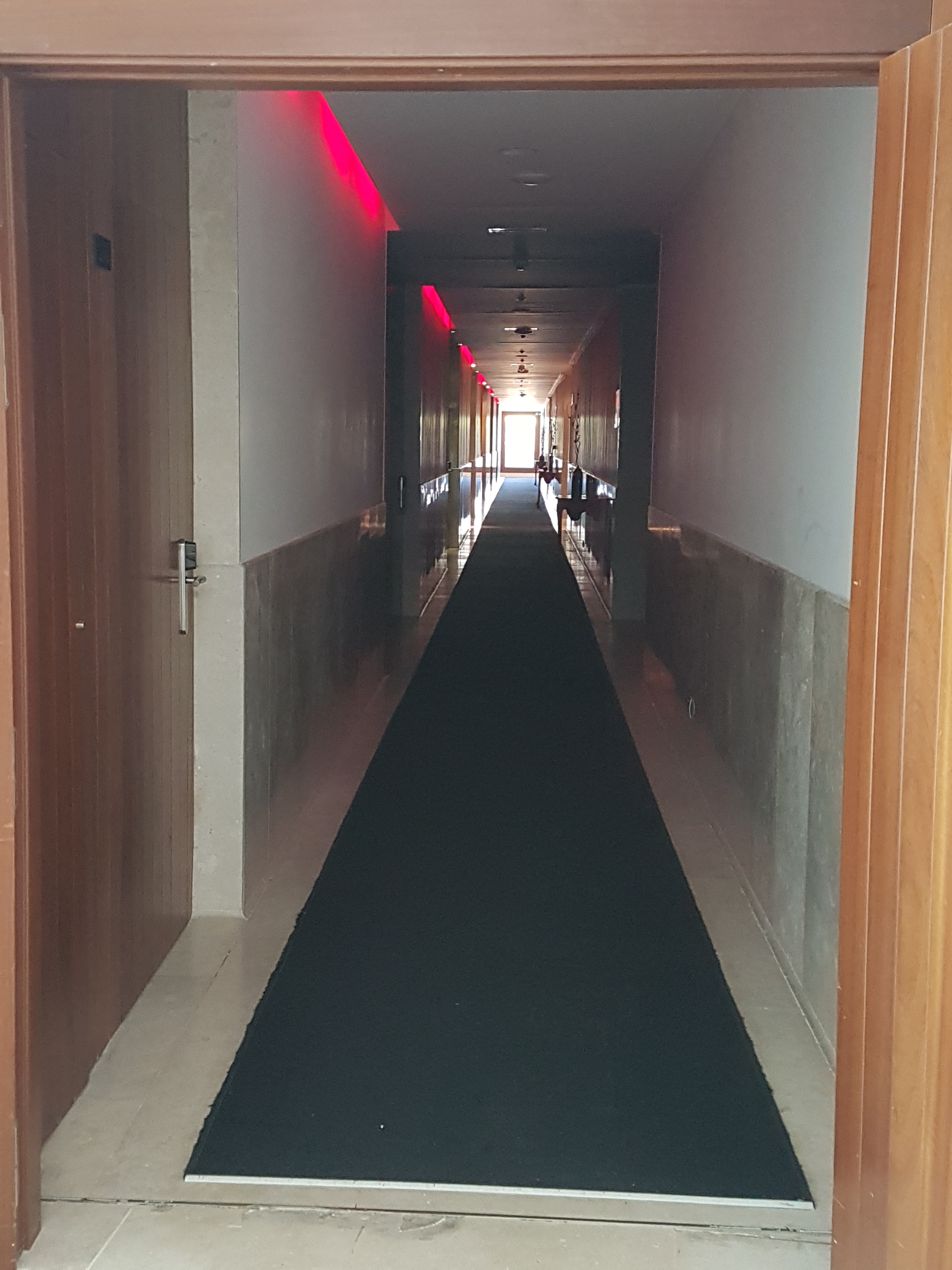 La entrada grande y espaciosa te lleva al spa y al ascensor que lleva a las habitaciones.