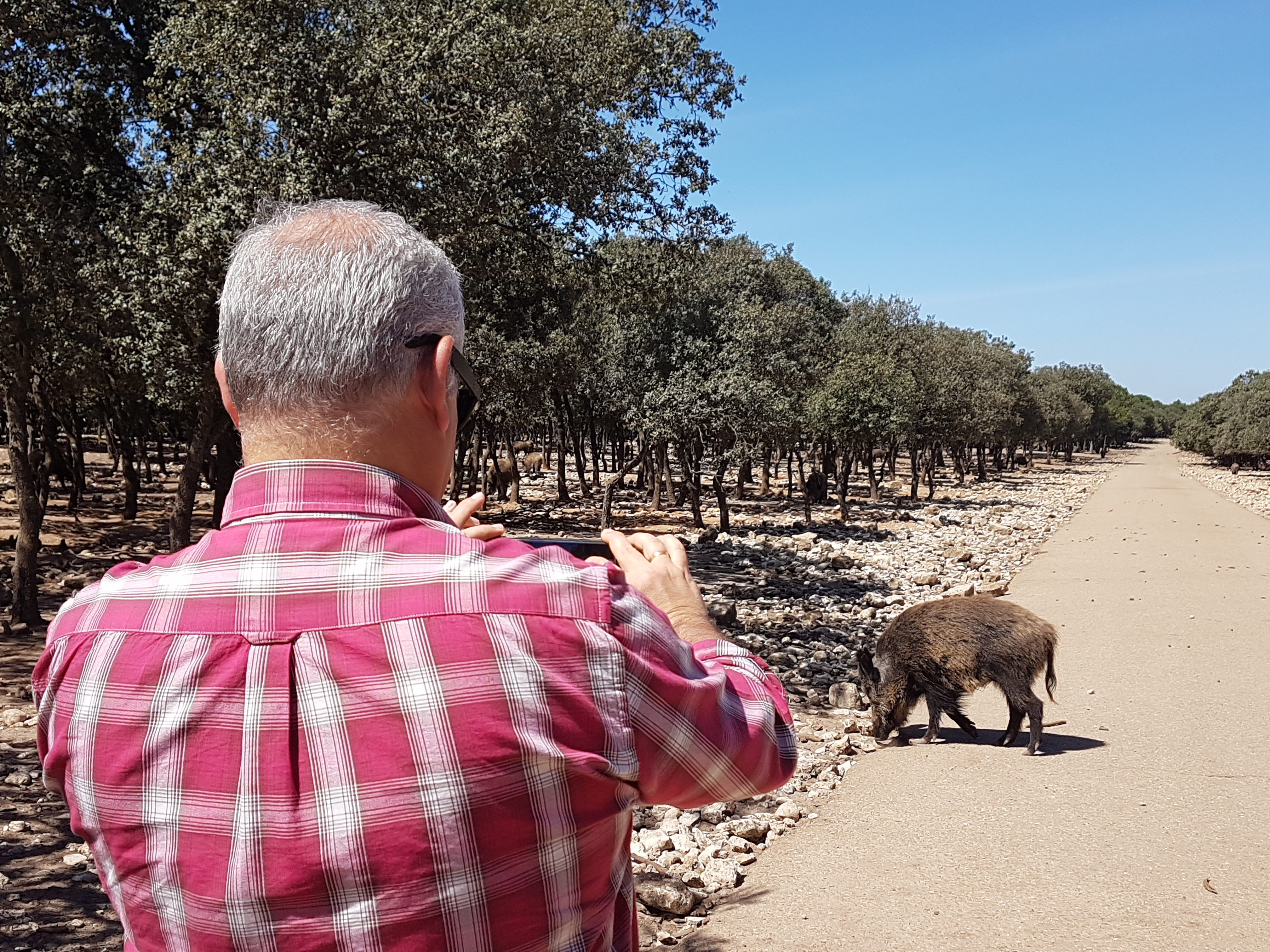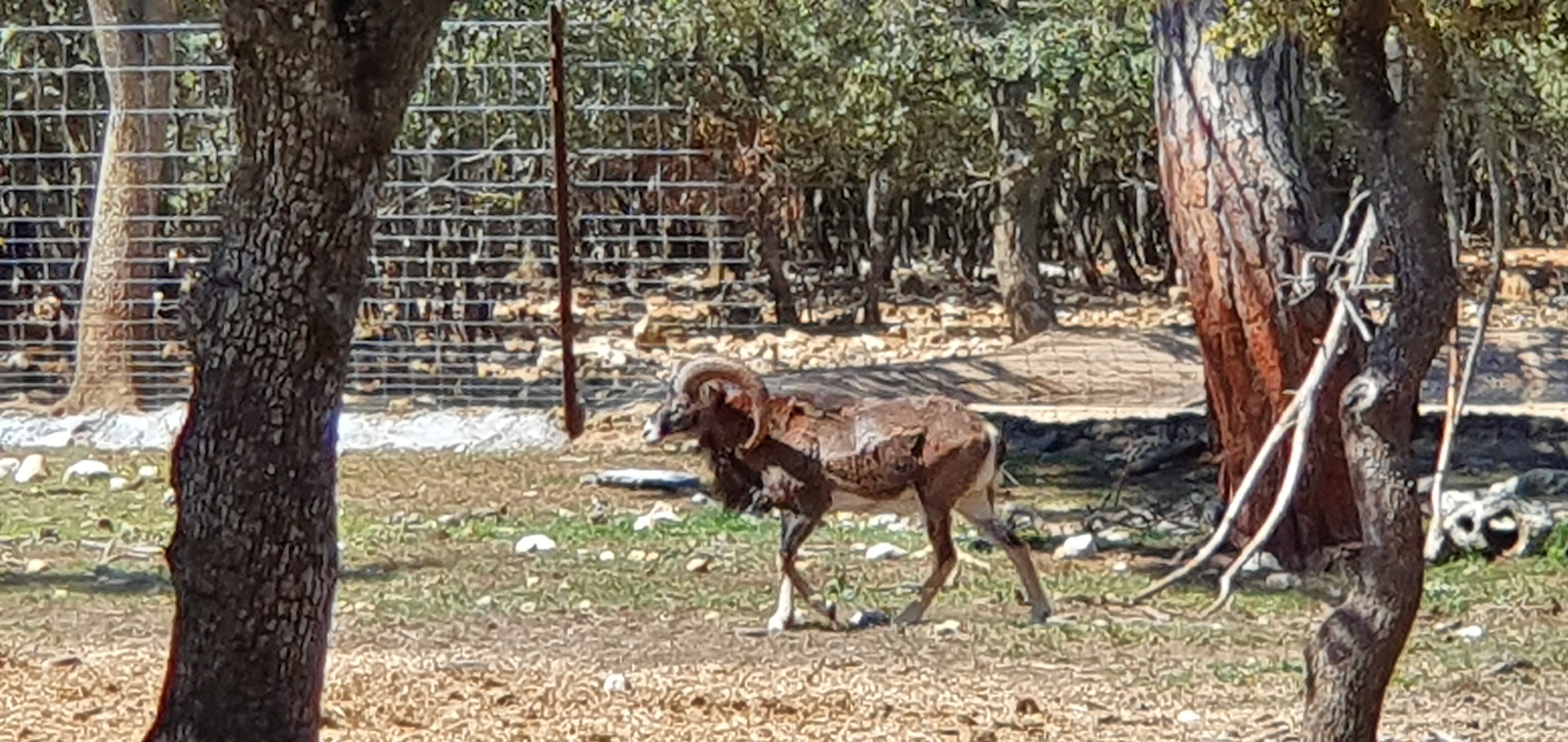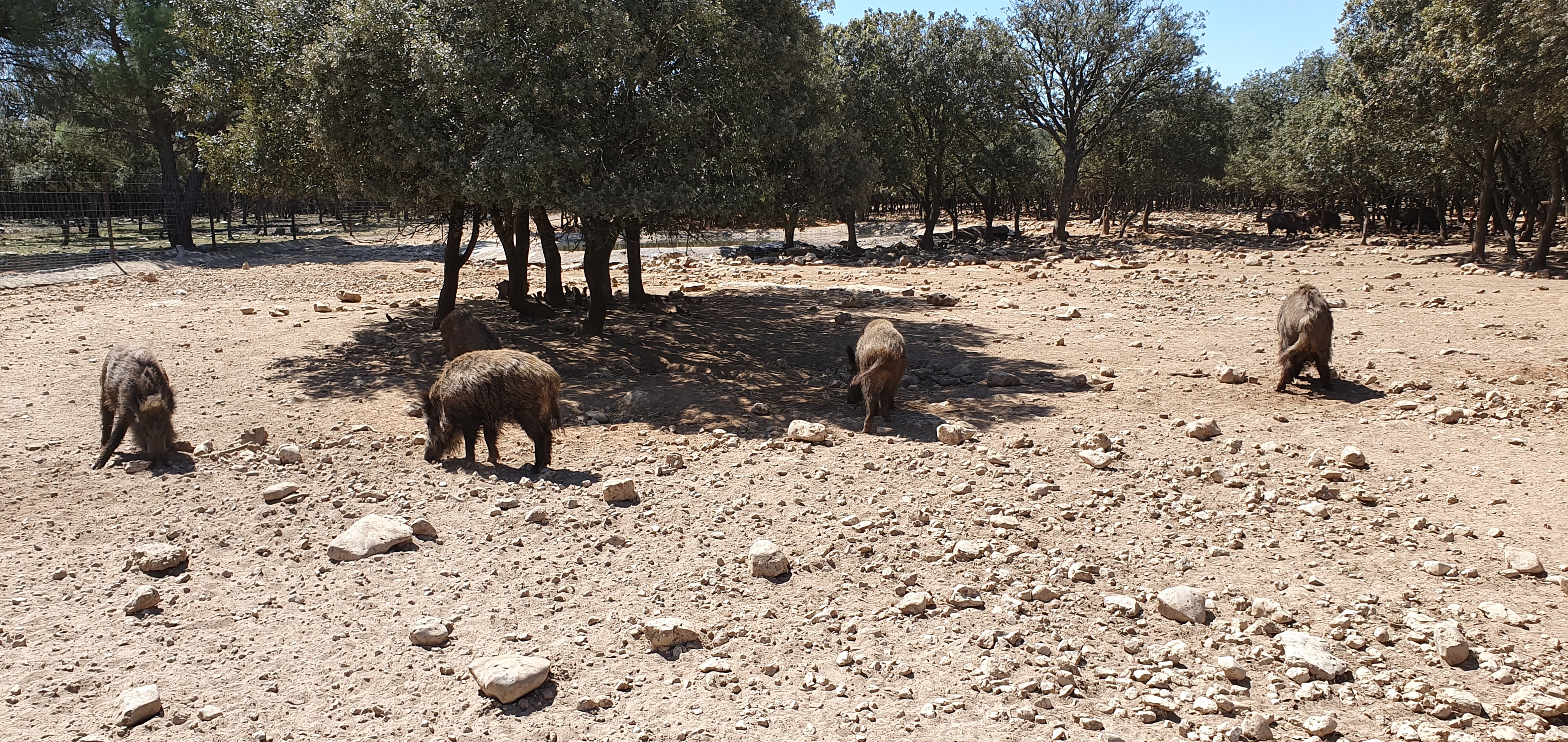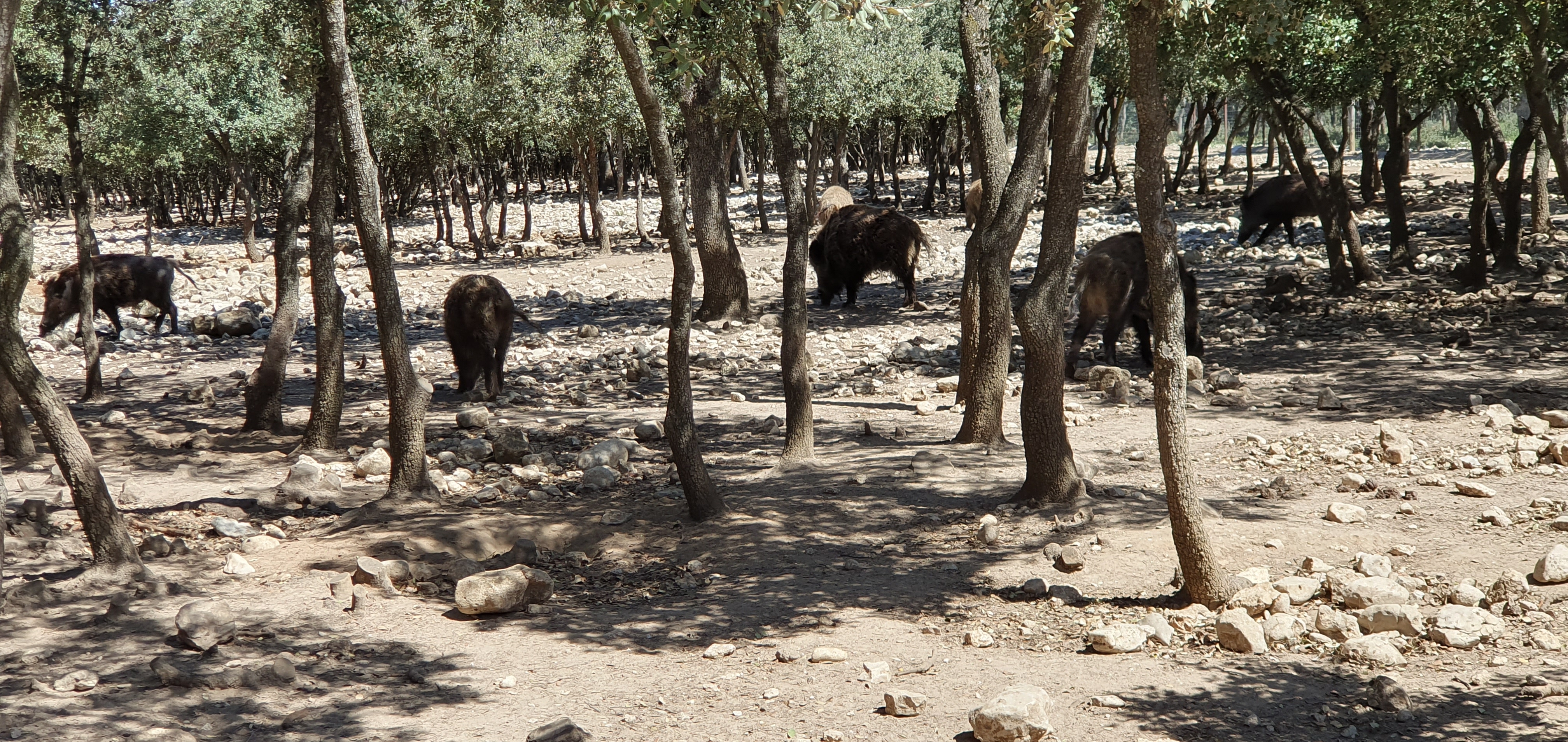 Volvemos a coger los coches para seguir recorriendo la finca y llegamos a otra de las paradas. Allí nos encontramos algunos muflones y los jabalíes.